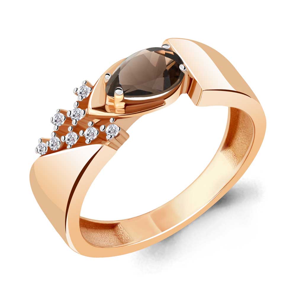 6939301А Кольцо из Серебра с кварцем дымчатым, фианитами
