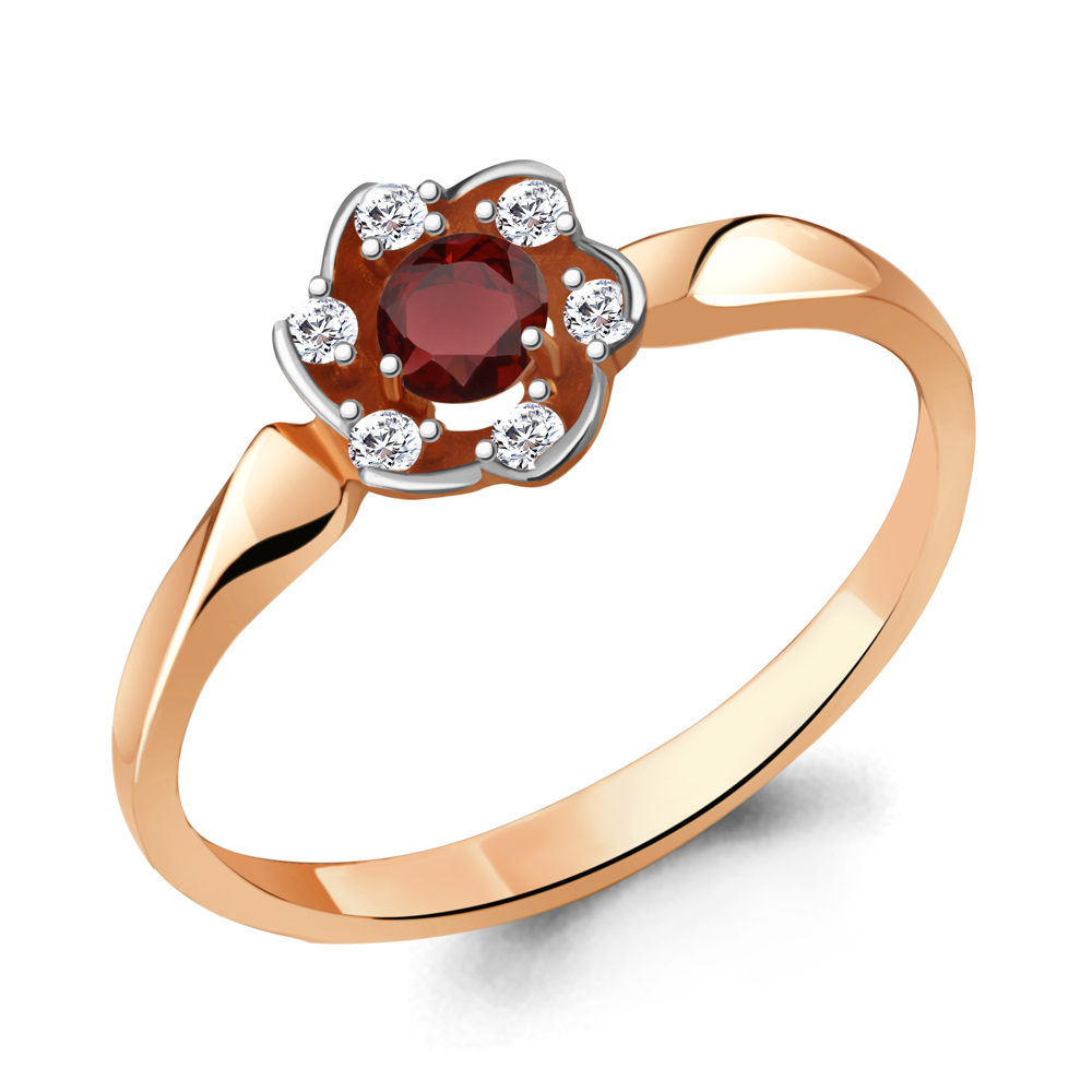 6941403А Кольцо из Серебра с гранатом, фианитами