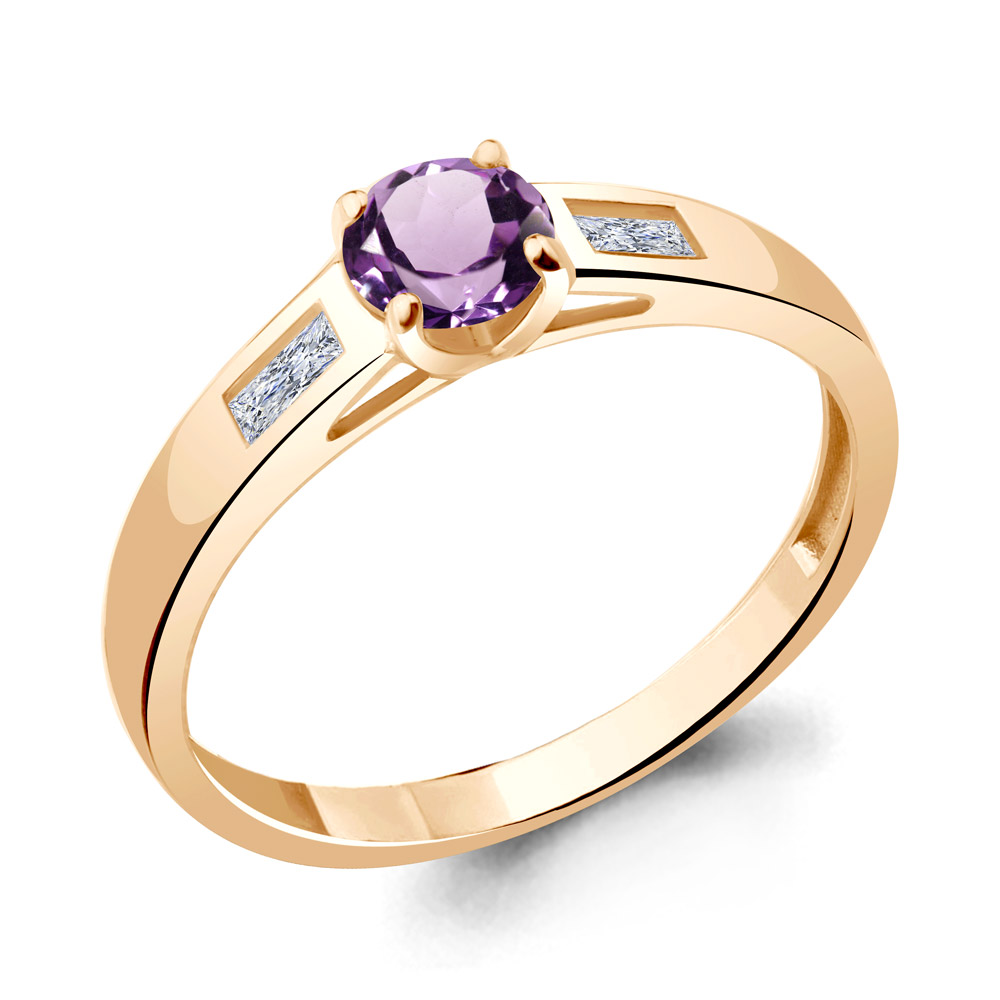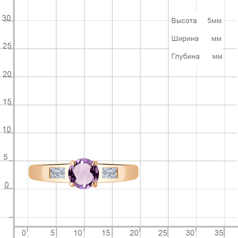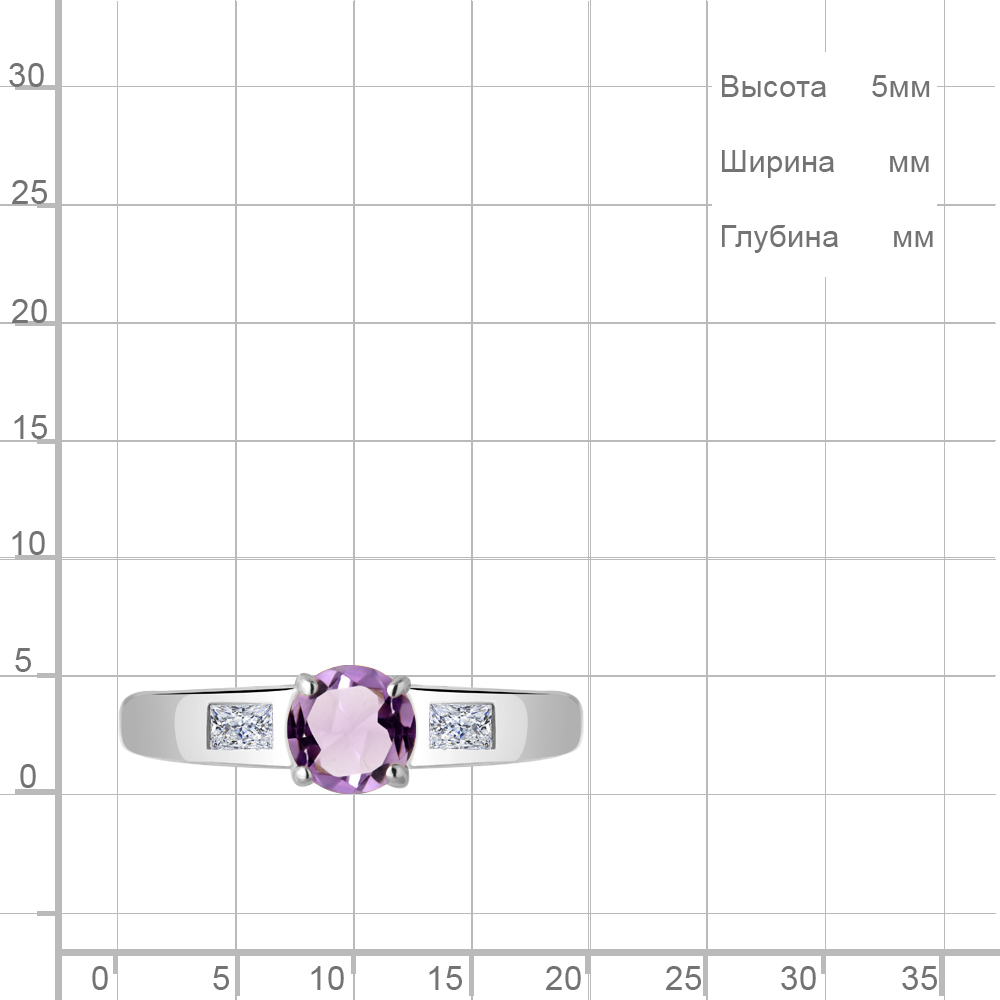 6945204 Кольцо из Серебра с аметистом, фианитами