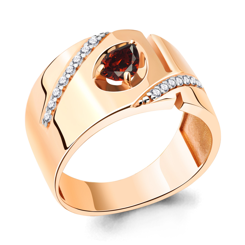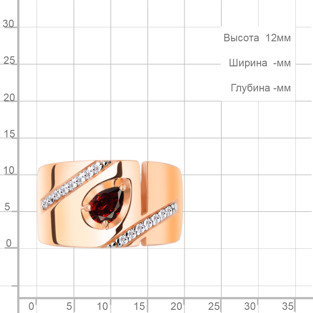 6945403А Кольцо из Серебра с гранатом, фианитами