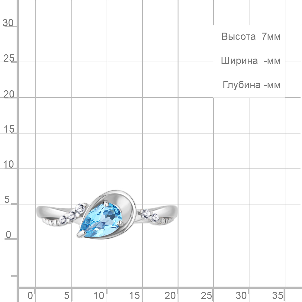 6950405А Кольцо из Серебра с топазом свисс блю, фианитами