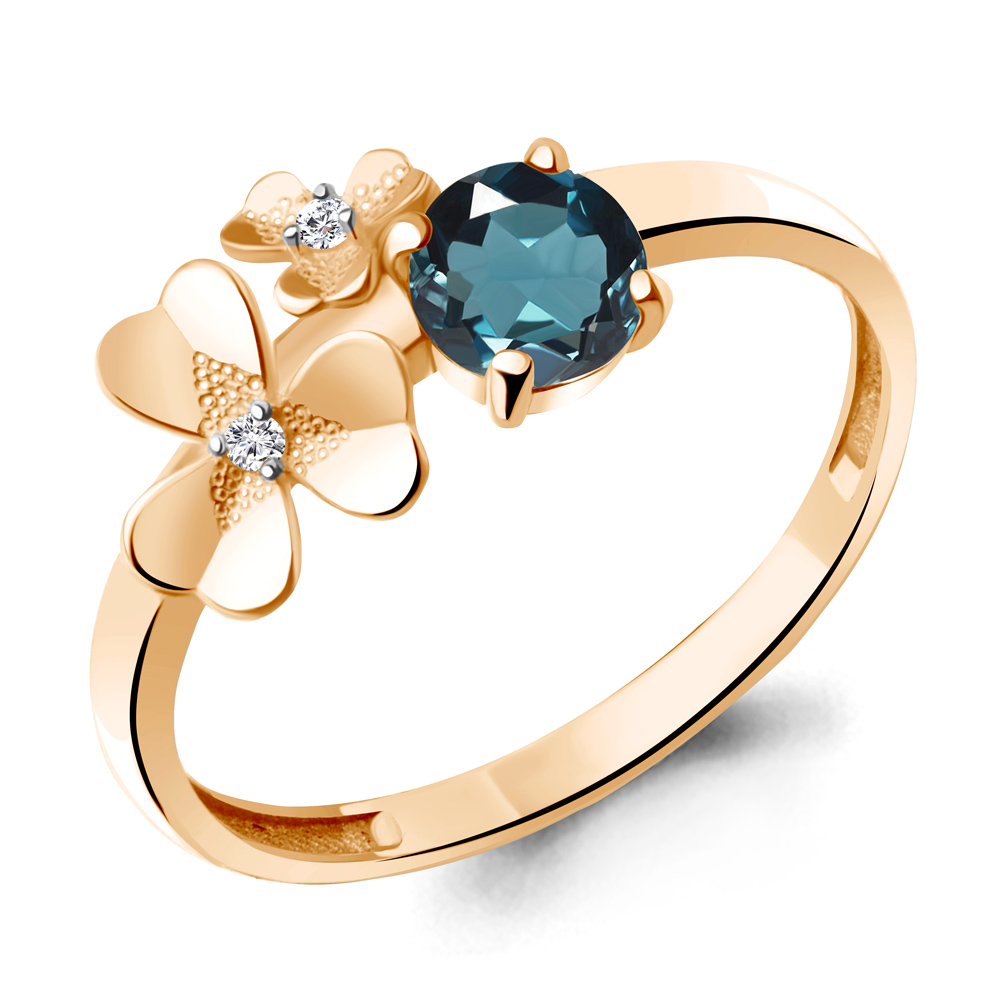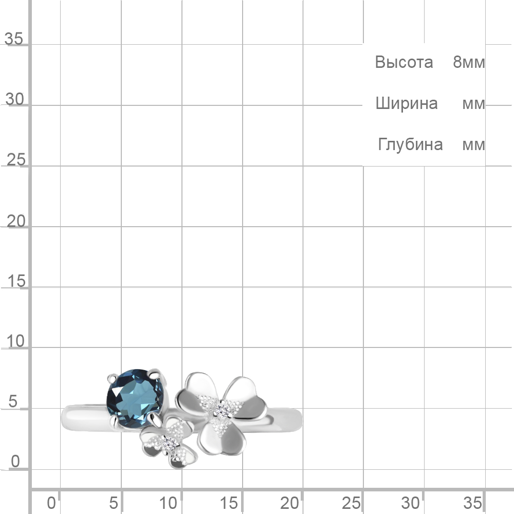 6956108А Кольцо из Серебра с топазом лондон блю, фианитами