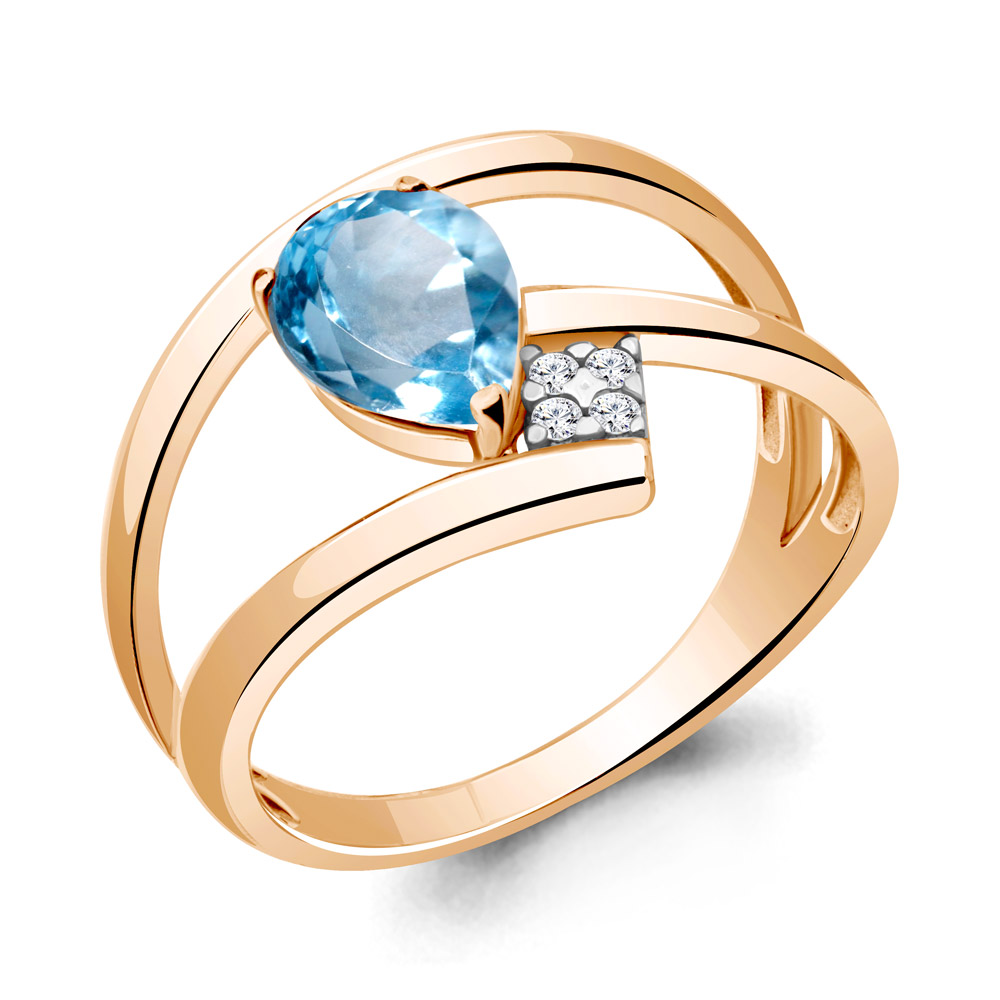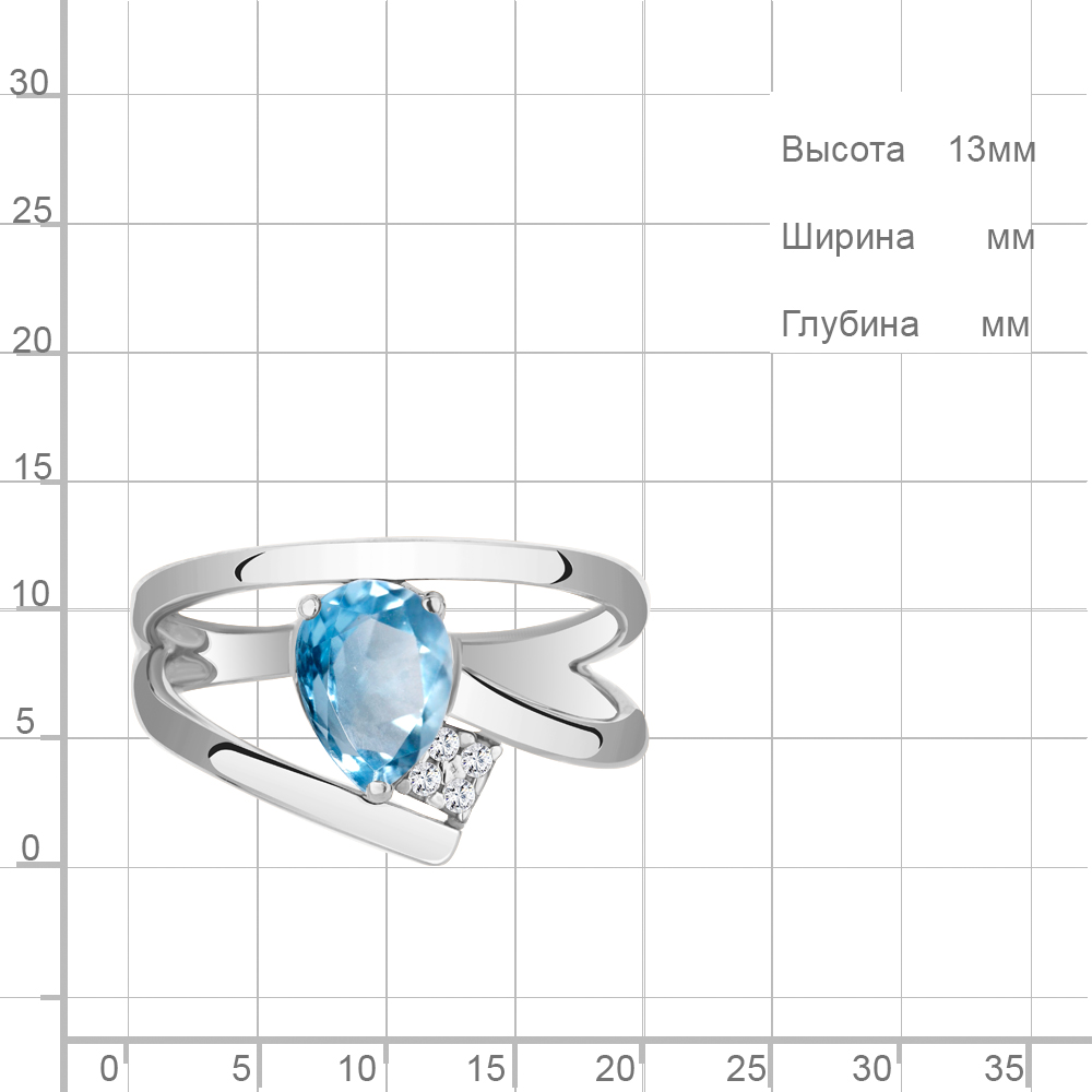 6959405А Кольцо из Серебра с топазом свисс блю, фианитами