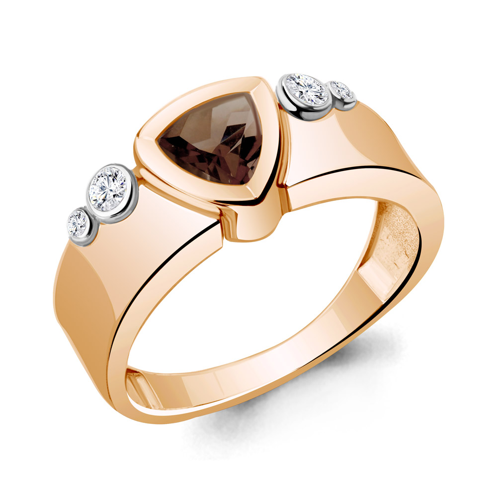 6960901А Кольцо из Серебра с кварцем дымчатым, фианитами