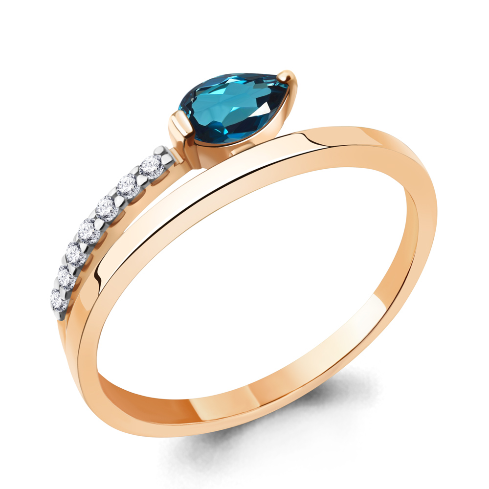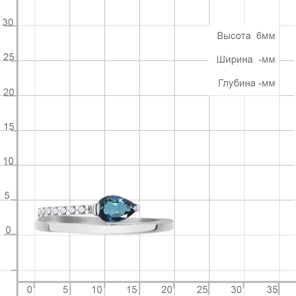 6962208А Кольцо из Серебра с топазом лондон блю, фианитами