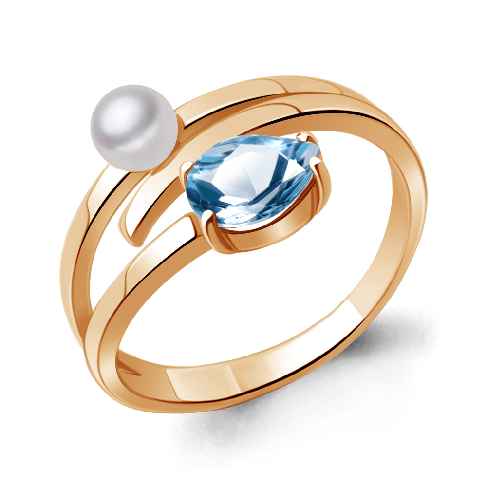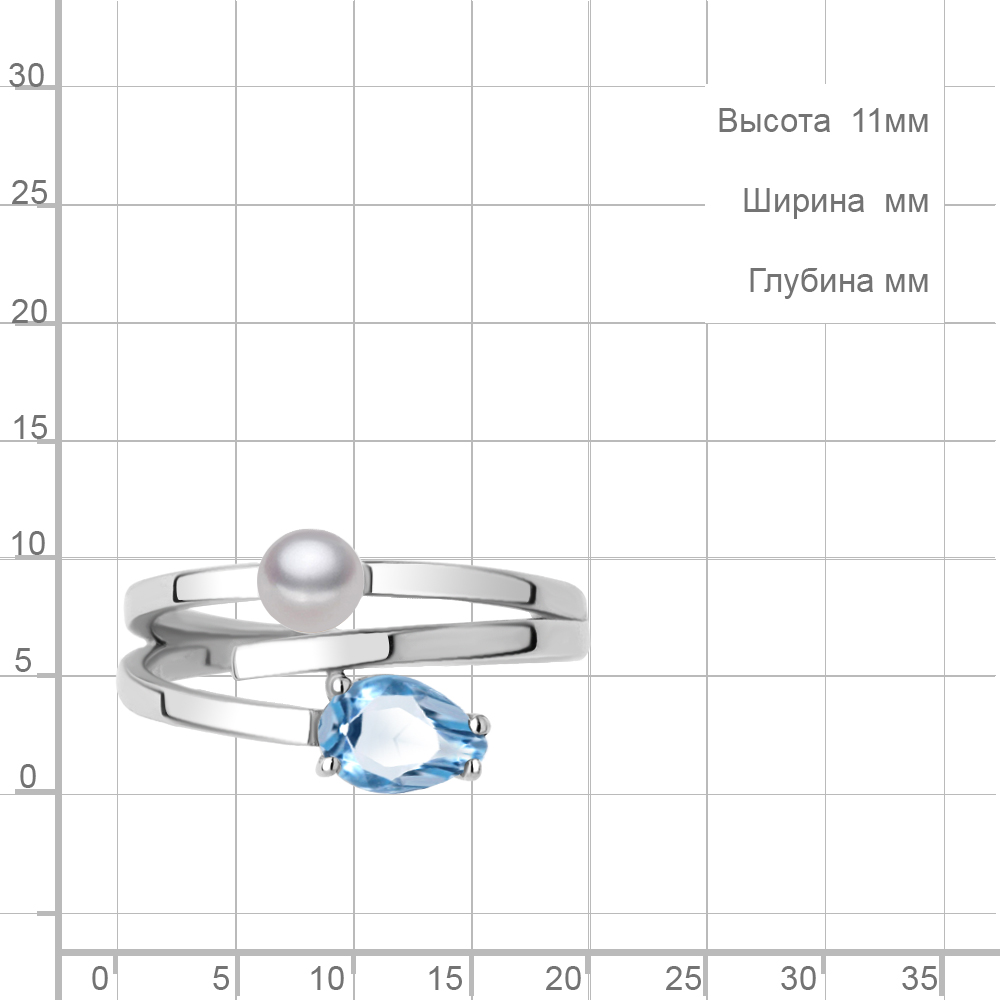 6962605 Кольцо из Серебра с культ. жемчугом ааа, топазом свисс блю