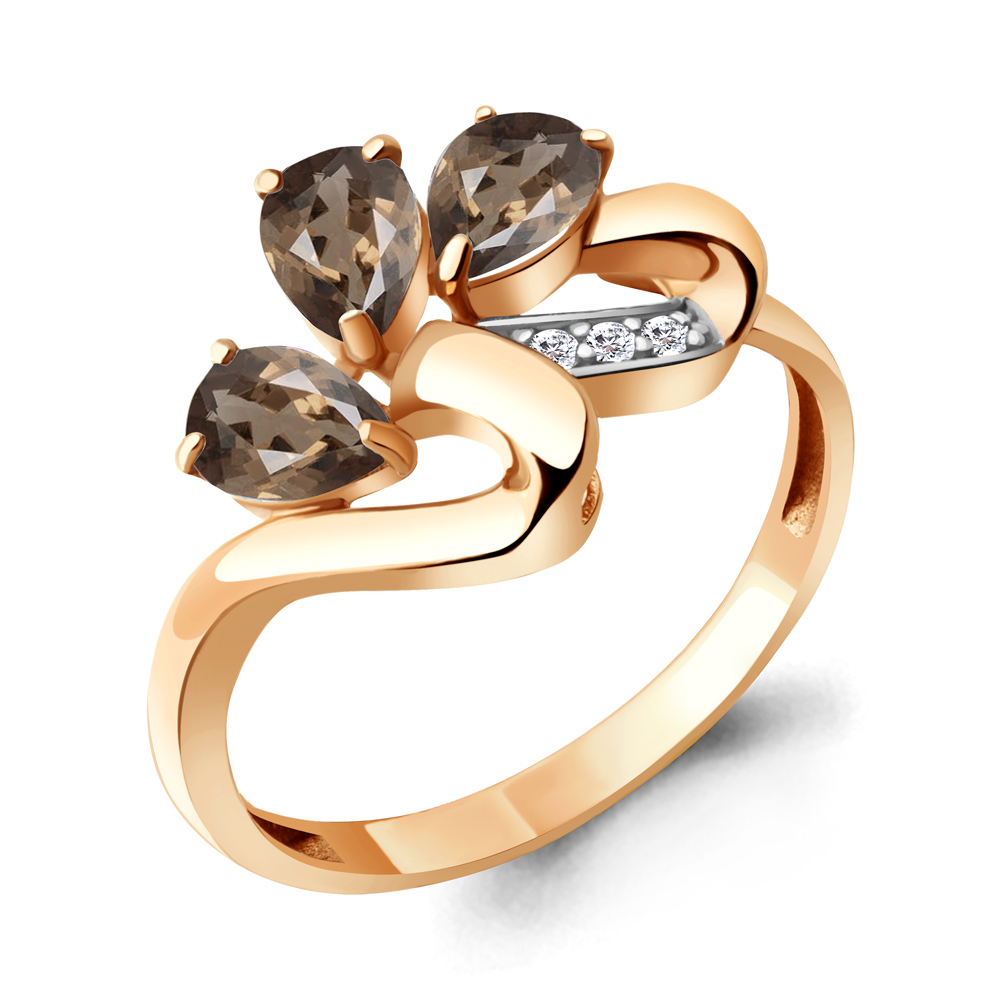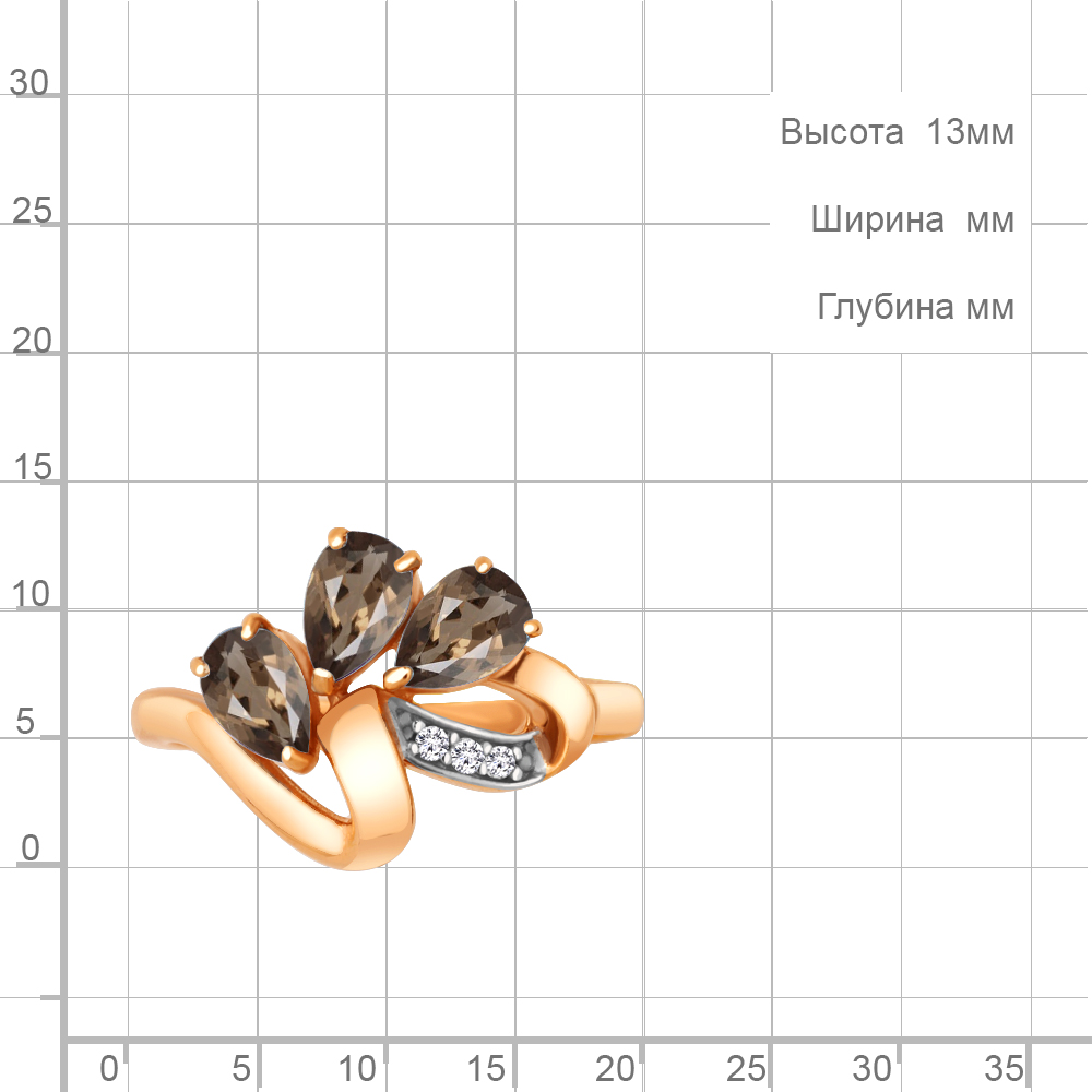 6963901А Кольцо из Серебра с кварцами дымчатыми, фианитами
