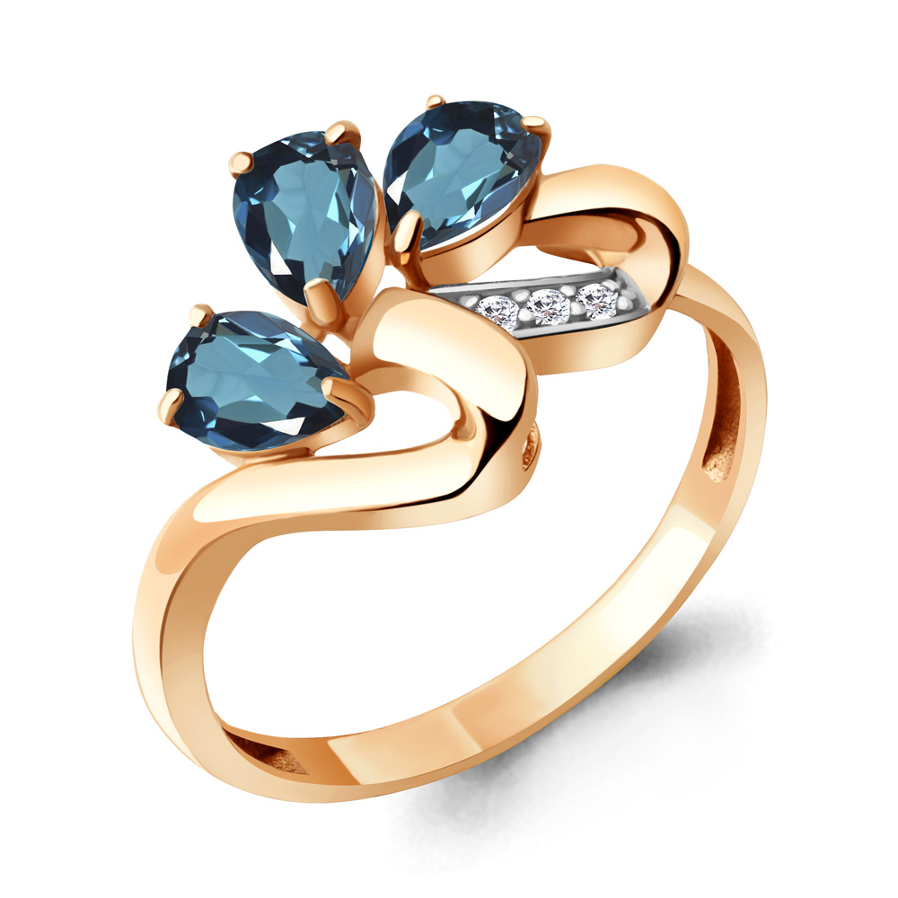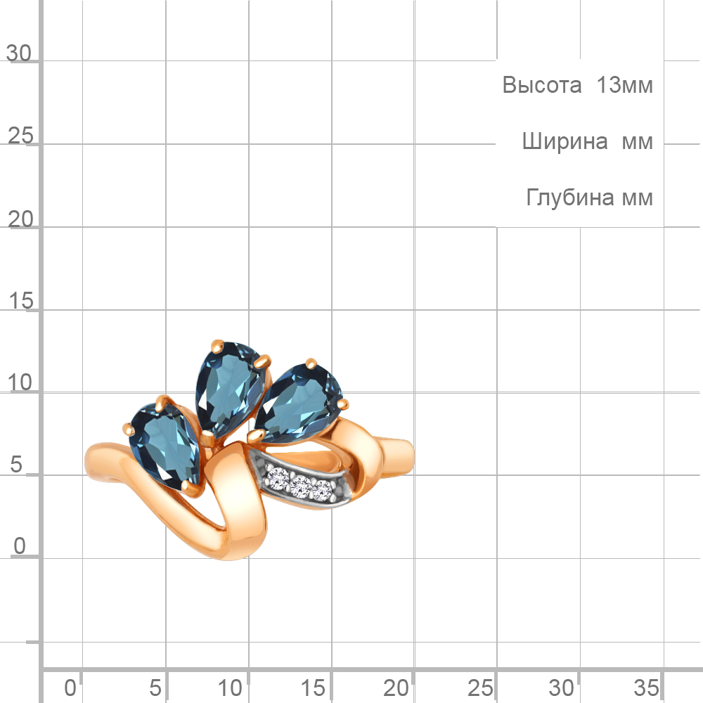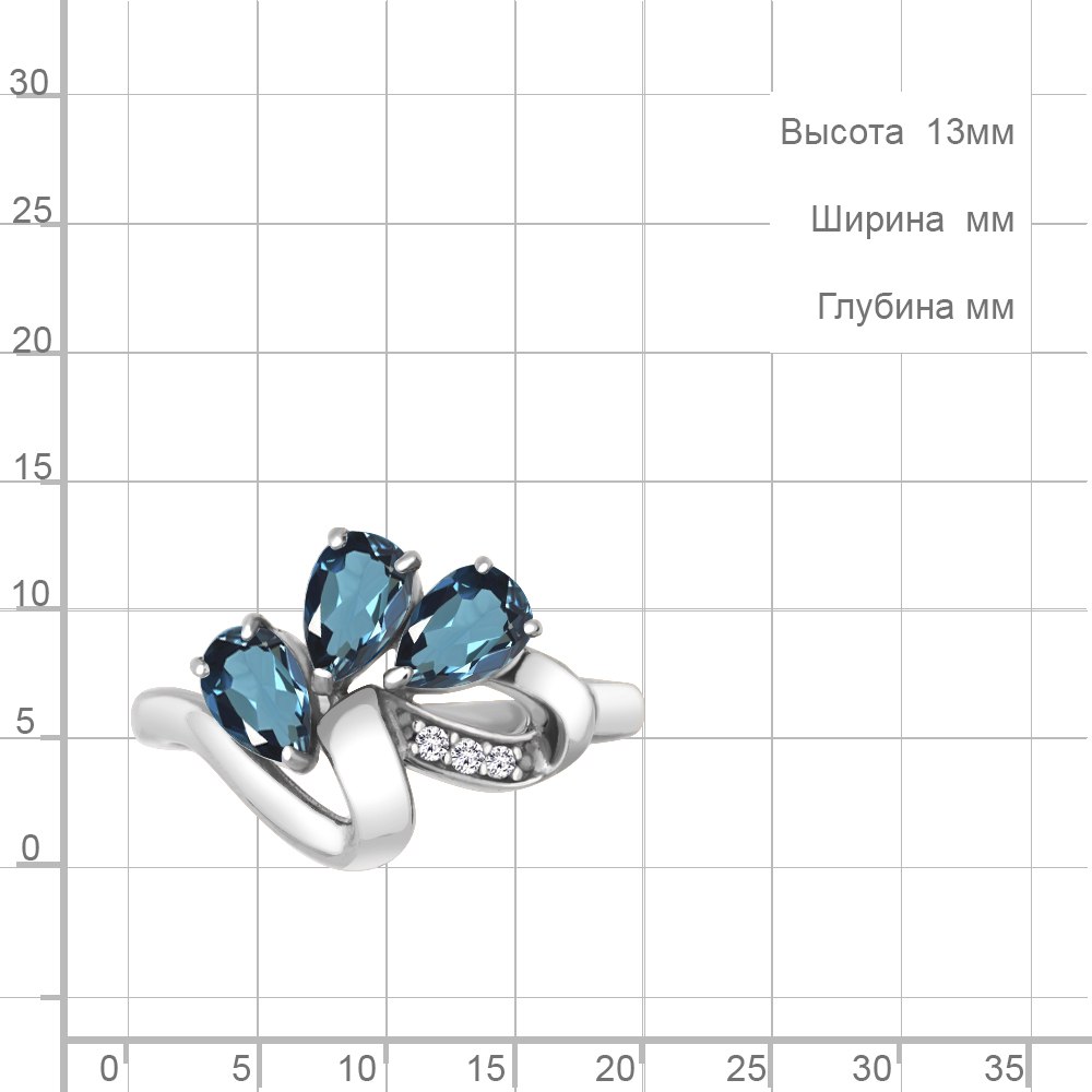 6963908А Кольцо из Серебра с топазами лондон блю, фианитами