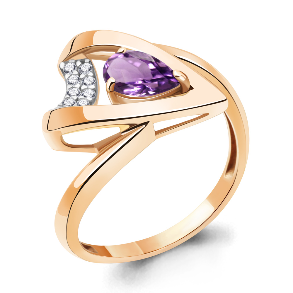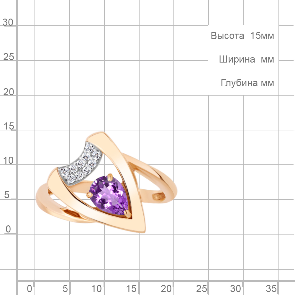 6964004А Кольцо из Серебра с аметистом, фианитами