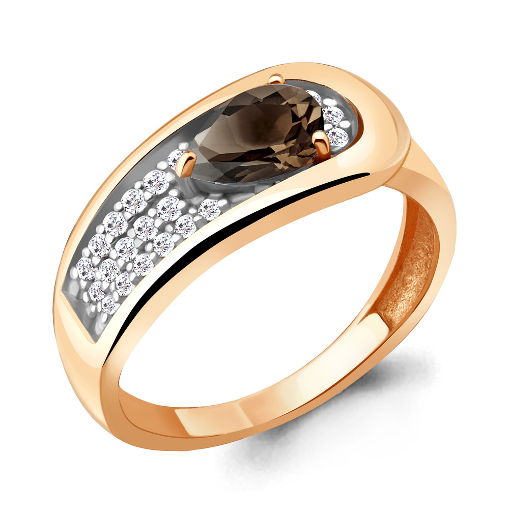 6969001А Кольцо из Серебра с кварцем дымчатым, фианитами