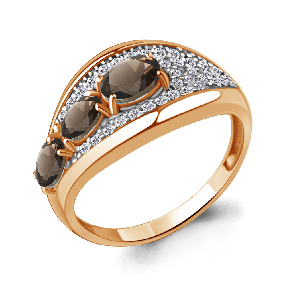 6969301А Кольцо из Серебра с кварцами дымчатыми, фианитами