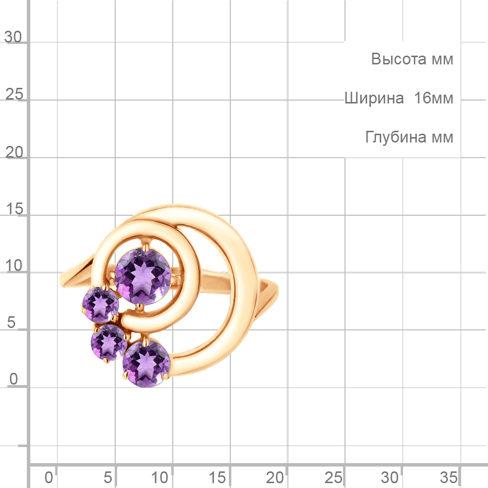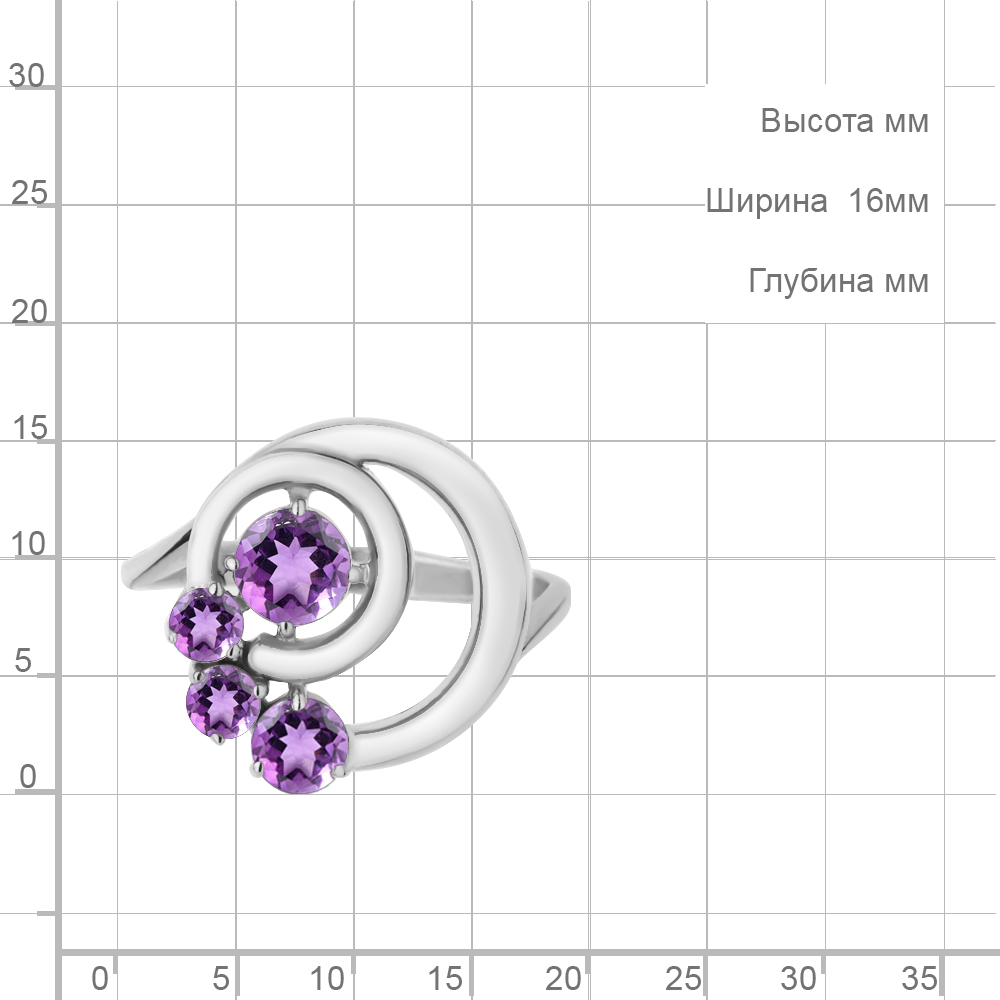 6970404 Кольцо из Серебра с аметистами
