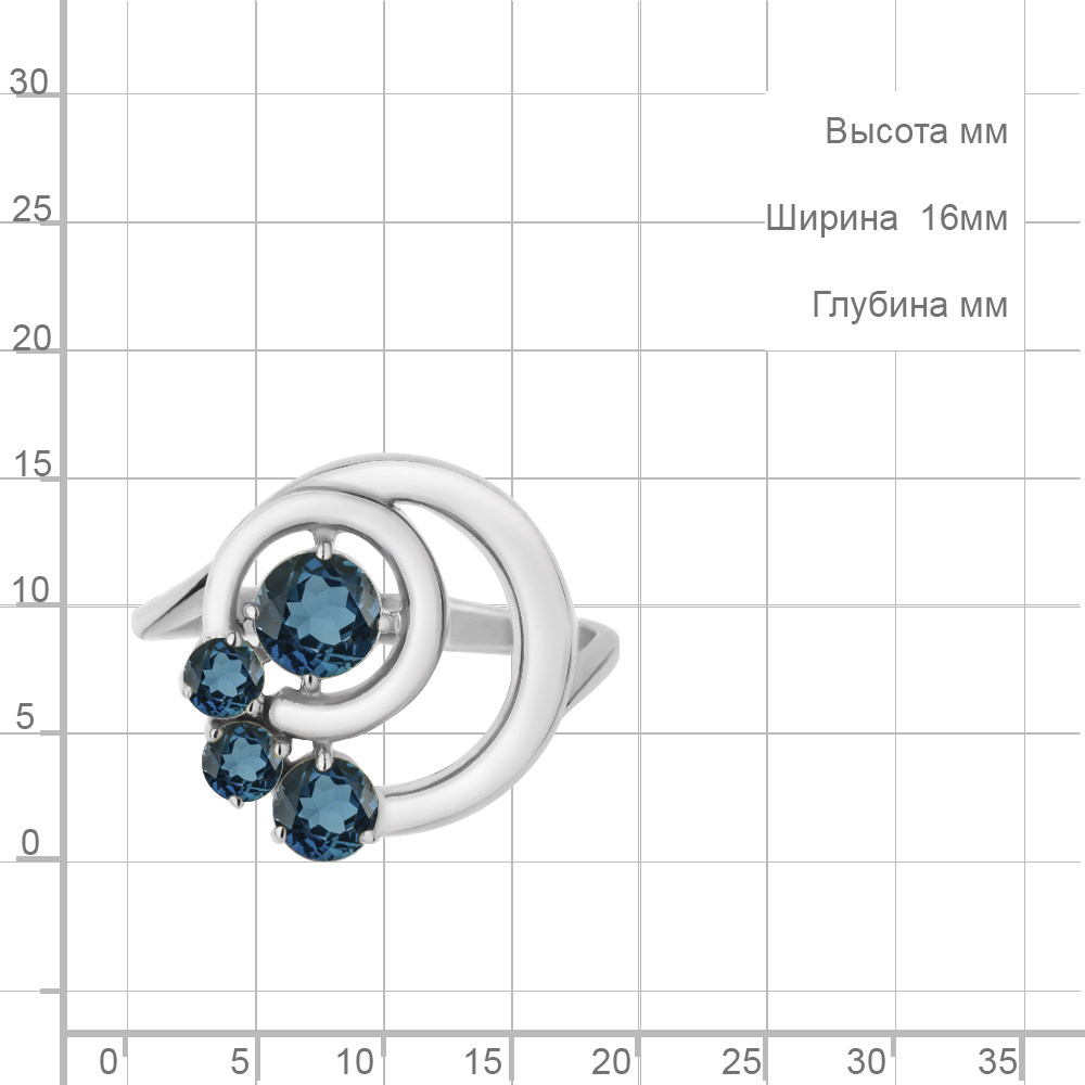 6970408 Кольцо из Серебра с топазами лондон блю