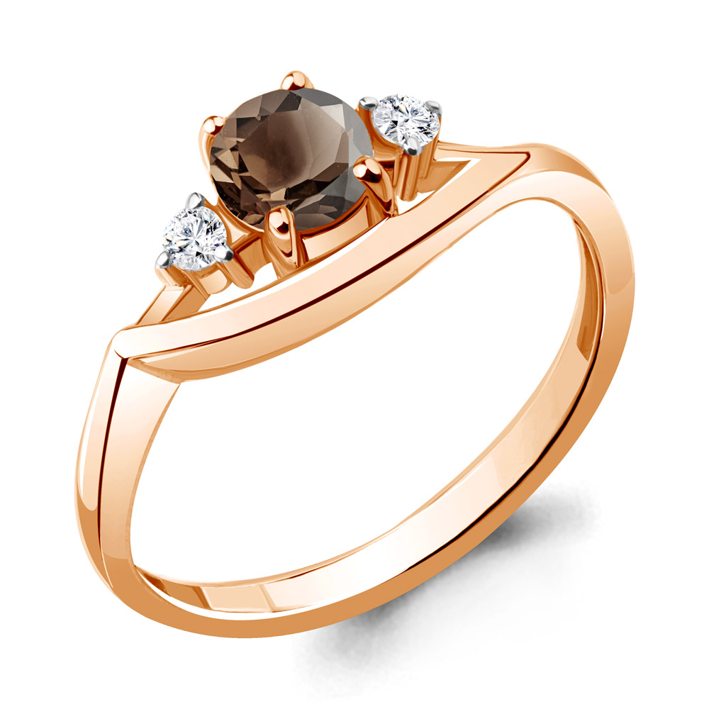 6971601А Кольцо из Серебра с кварцем дымчатым, фианитами