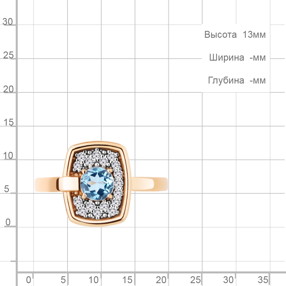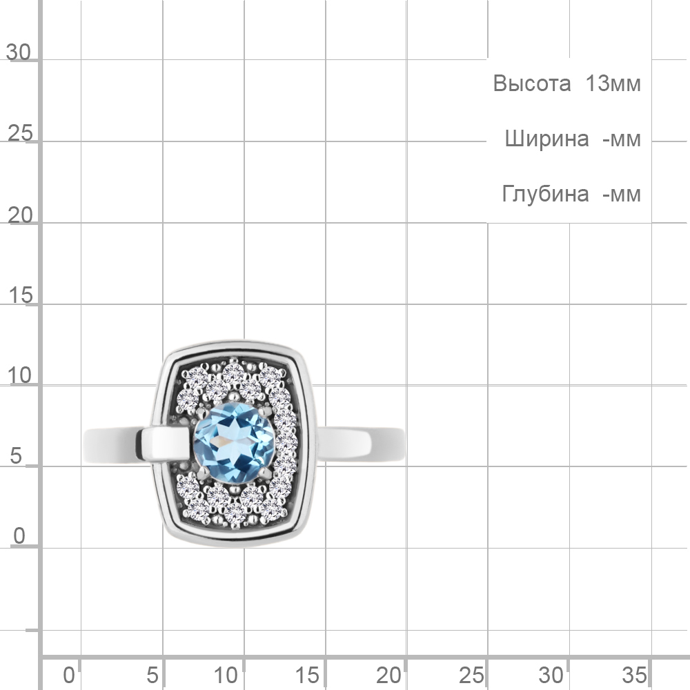 6973405А Кольцо из Серебра с топазом свисс блю, фианитами