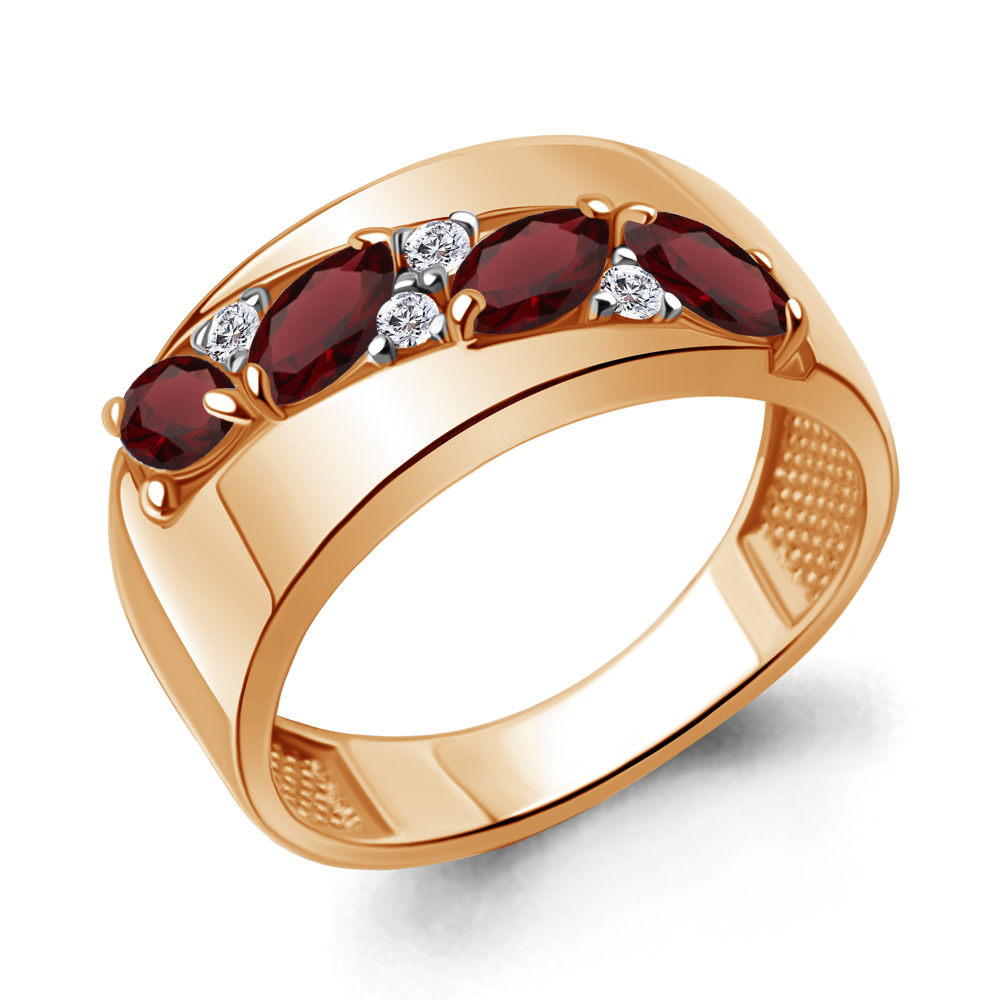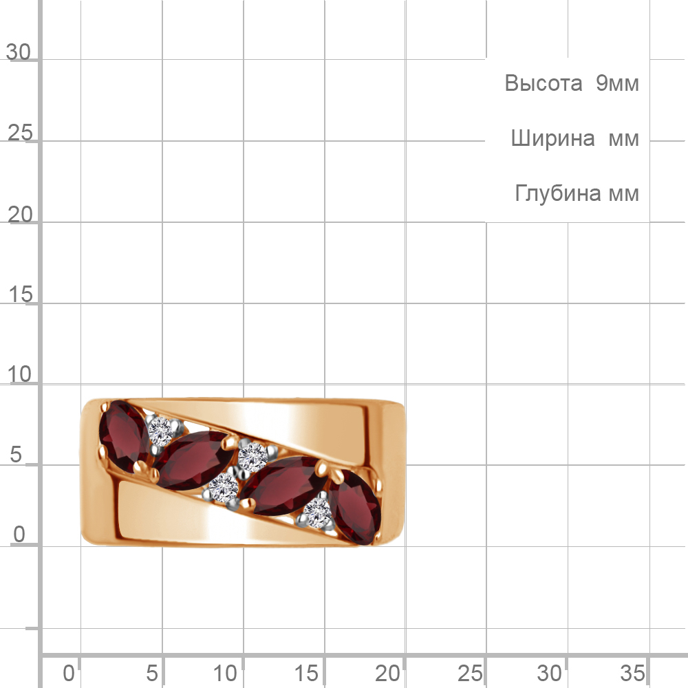 6974803А Кольцо из Серебра с гранатами, фианитами