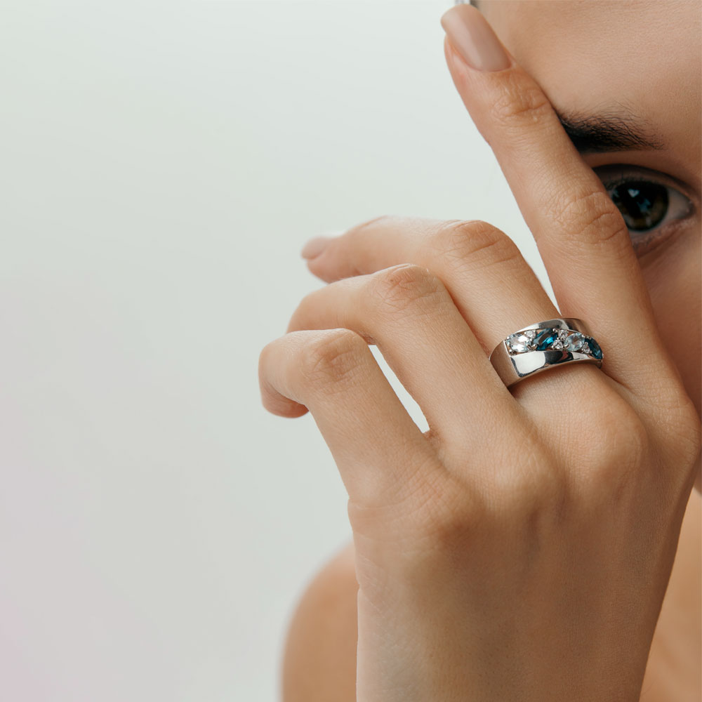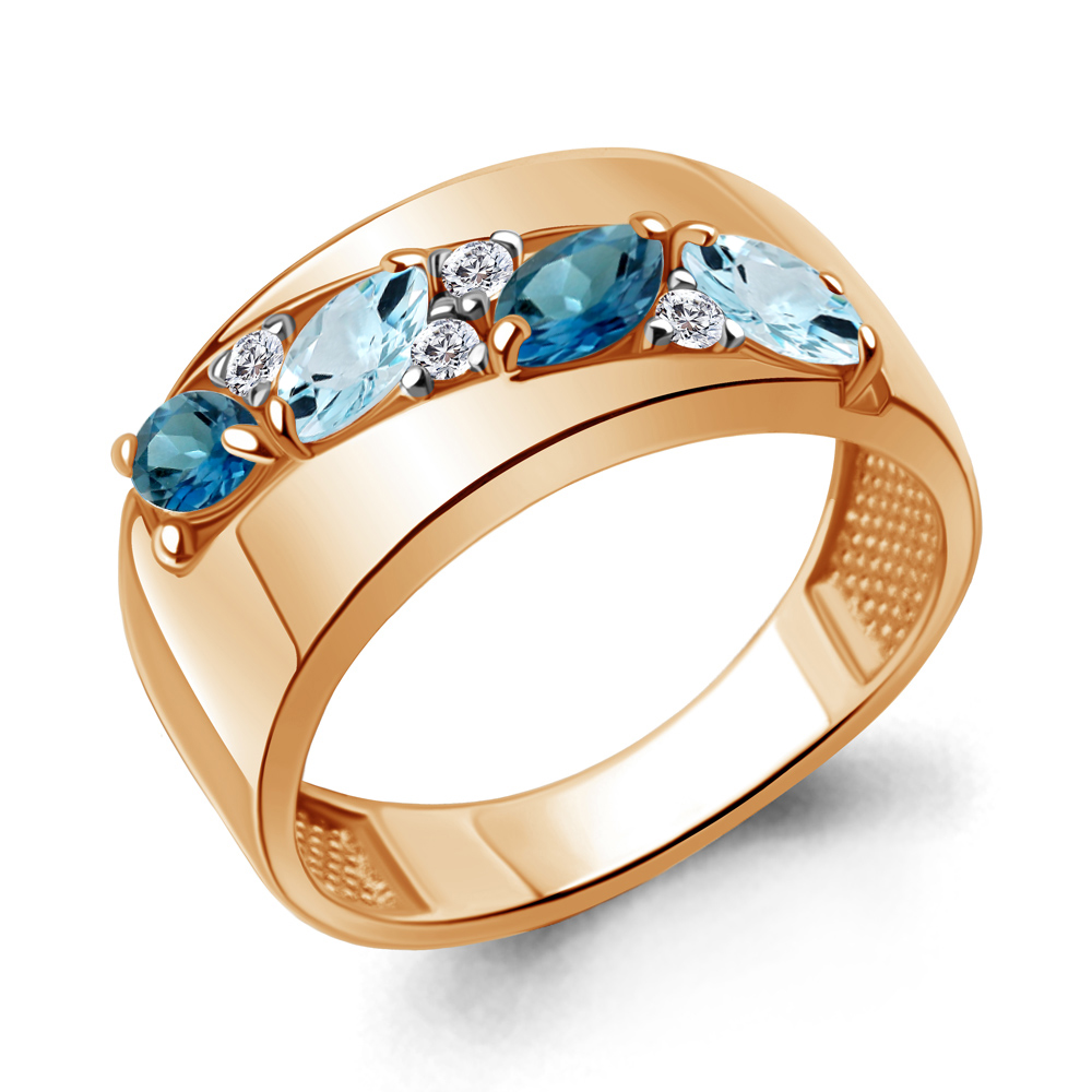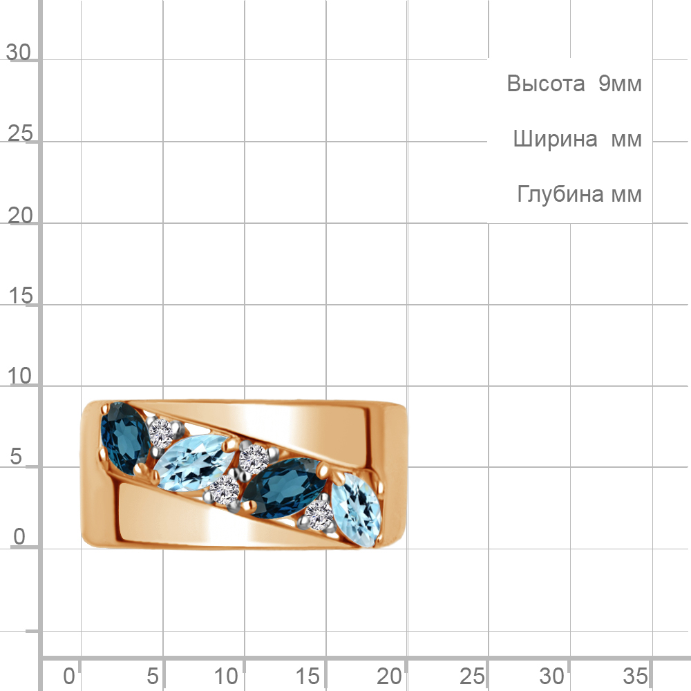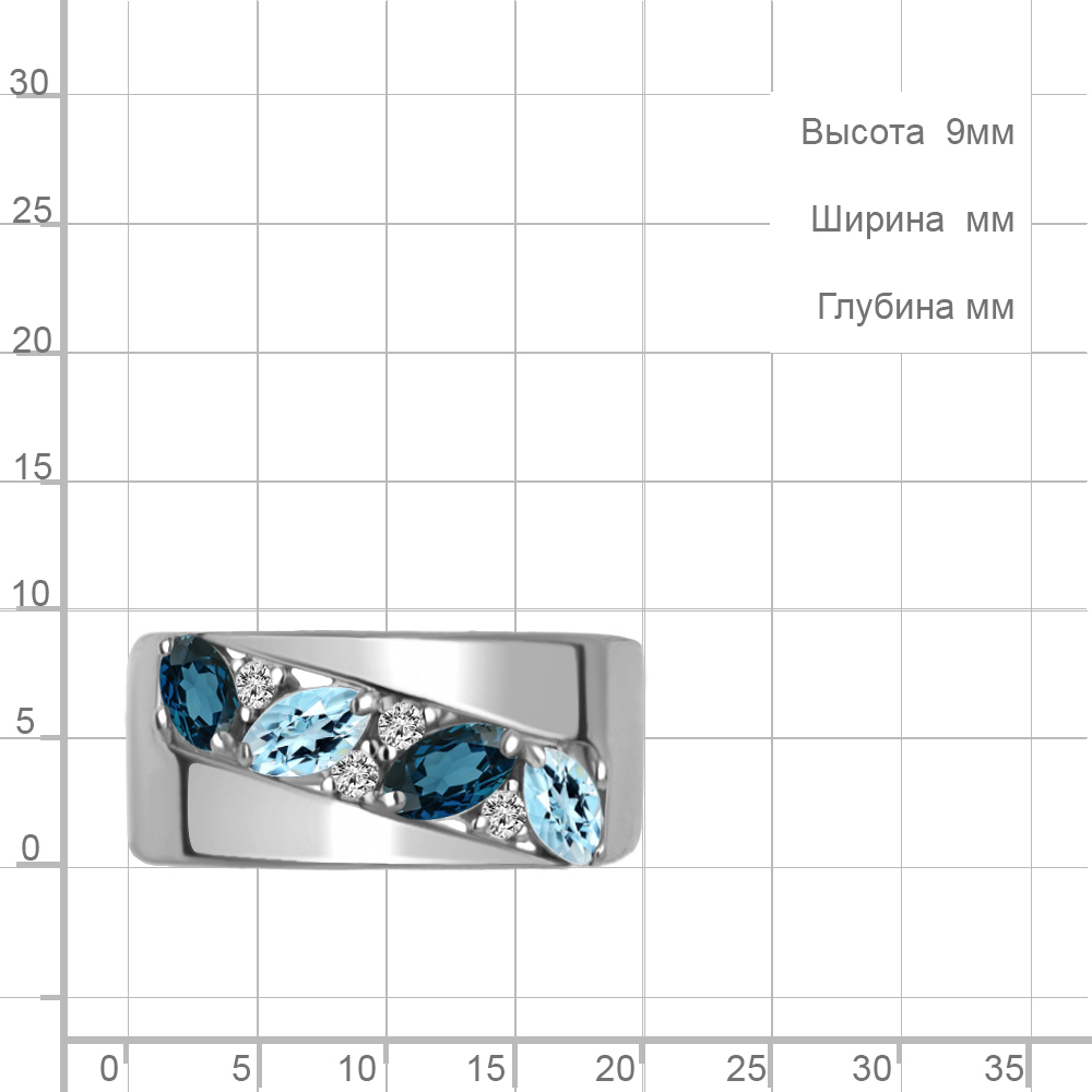 69748600А Кольцо из Серебра с топазами лондон блю, топазами скай блю, фианитами