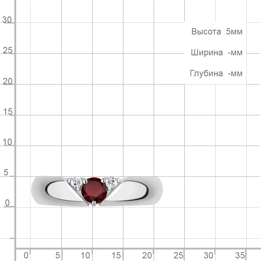 6974903А Кольцо из Серебра с гранатом, фианитами