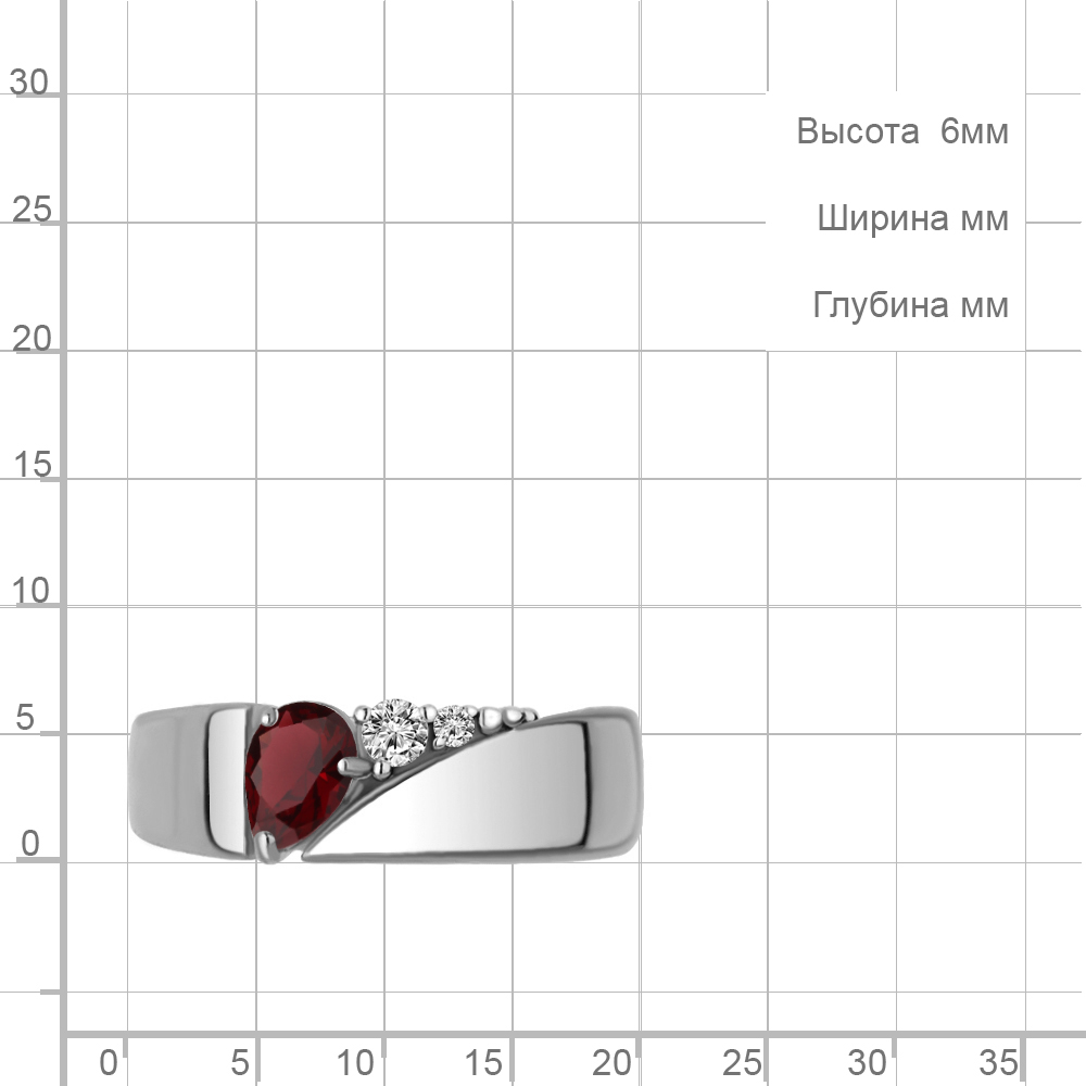 6975003А Кольцо из Серебра с гранатом, фианитами