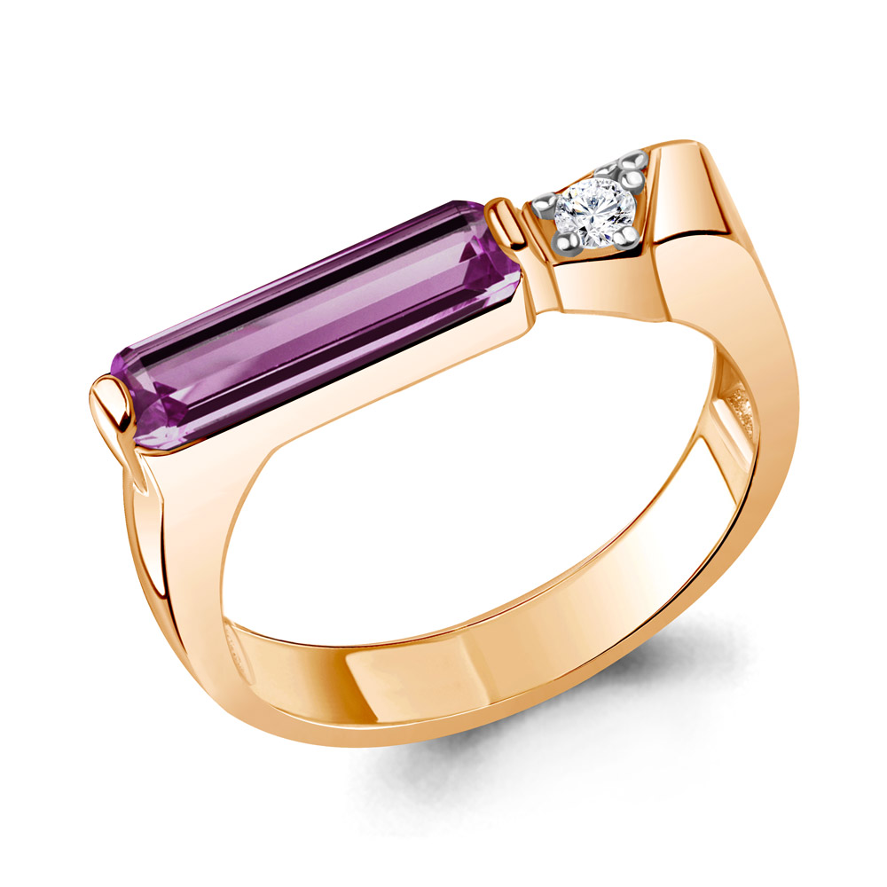 6976084А Кольцо из Серебра с наноаметистом иск., фианитом