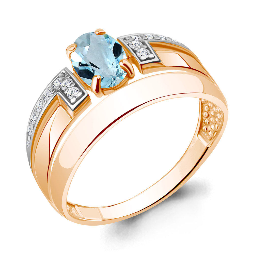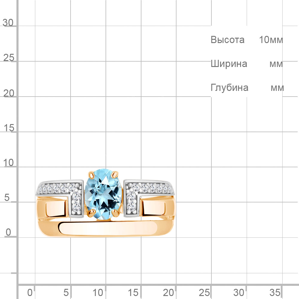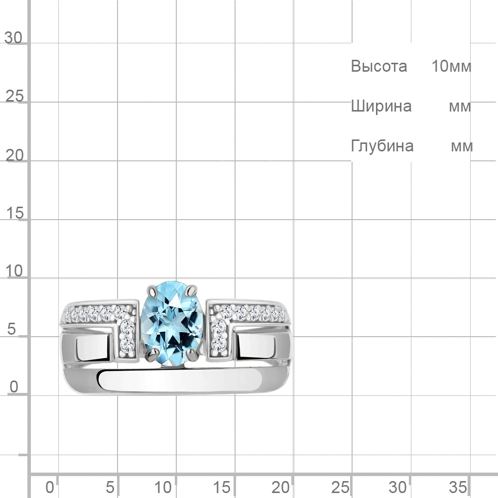 6977702А Кольцо из Серебра с топазом скай блю, фианитами