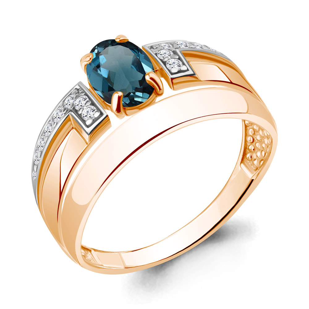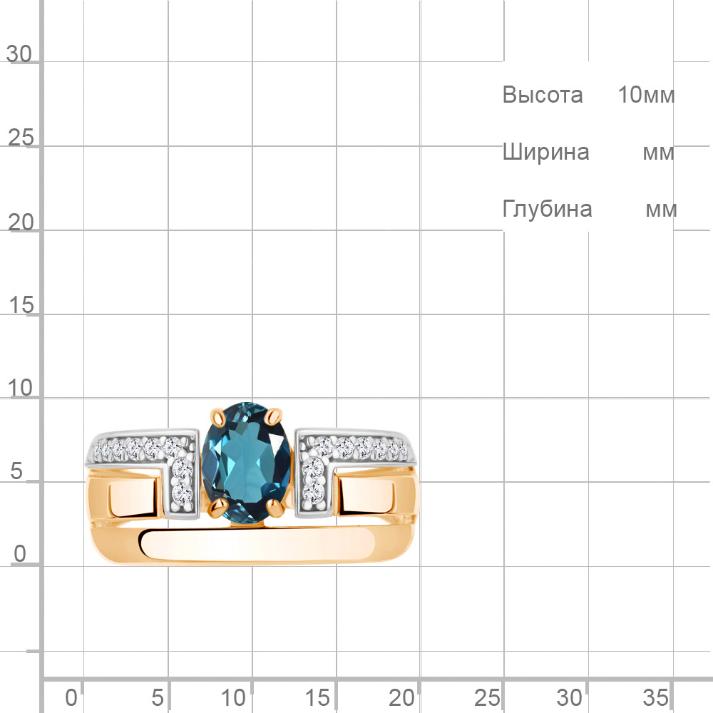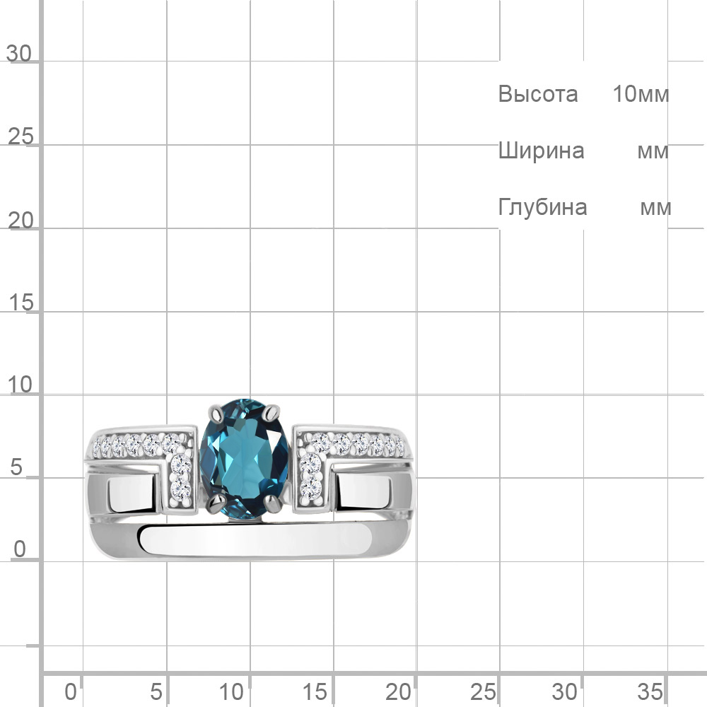 6977708А Кольцо из Серебра с топазом лондон блю, фианитами
