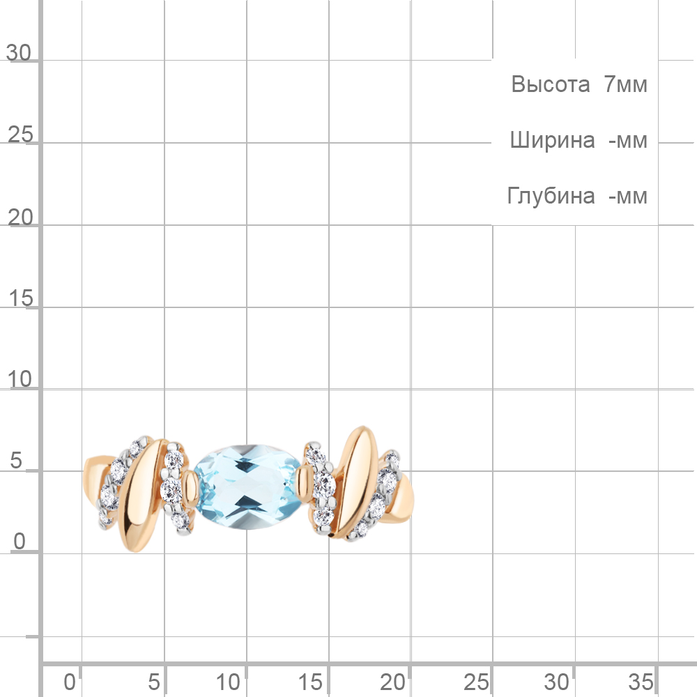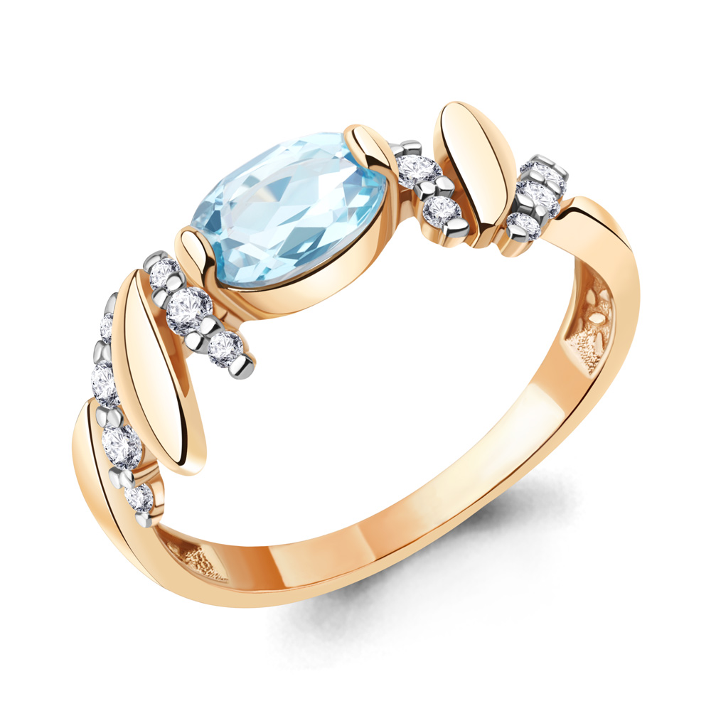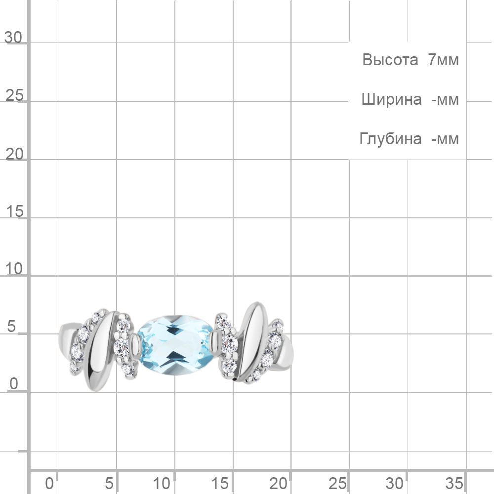 6978102А Кольцо из Серебра с топазом скай блю, фианитами