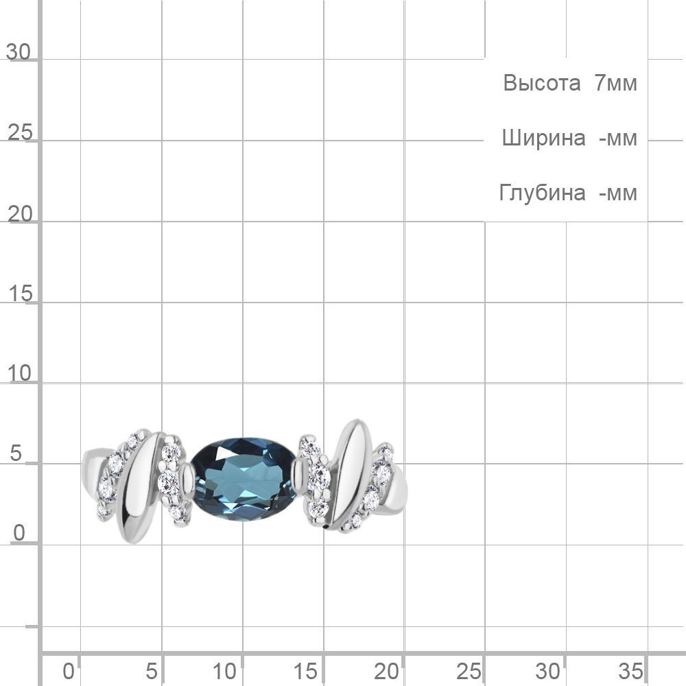 6978108А Кольцо из Серебра с топазом лондон блю, фианитами