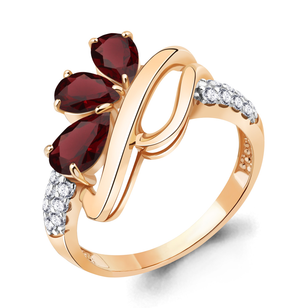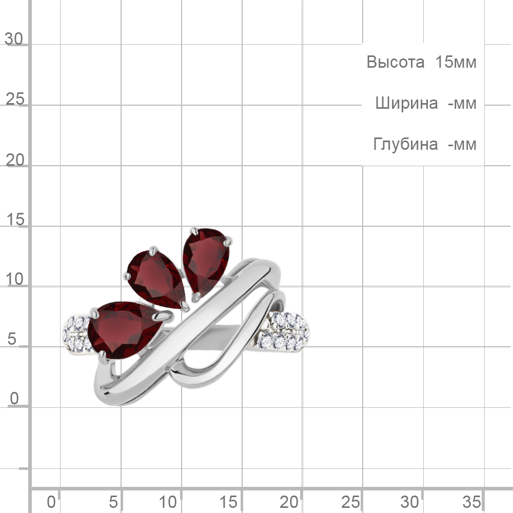 6978403А Кольцо из Серебра с гранатами, фианитами