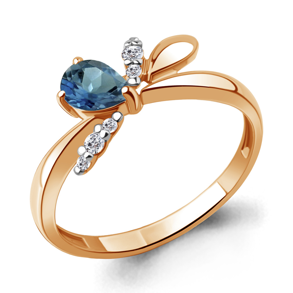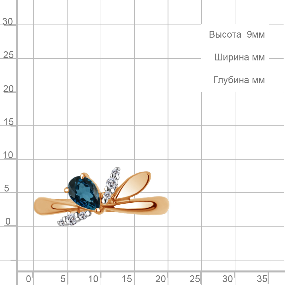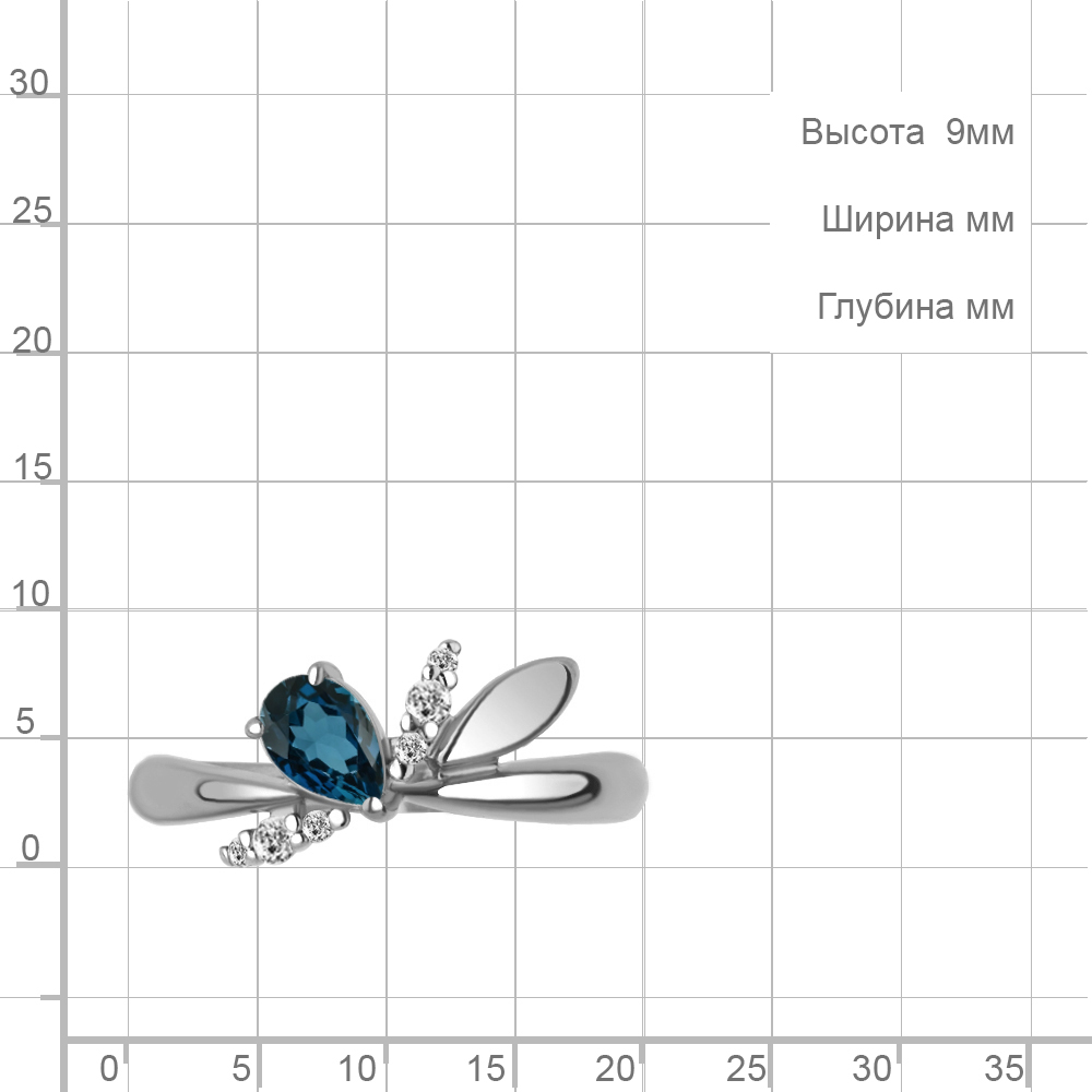 6979208А Кольцо из Серебра с топазом лондон блю, фианитами