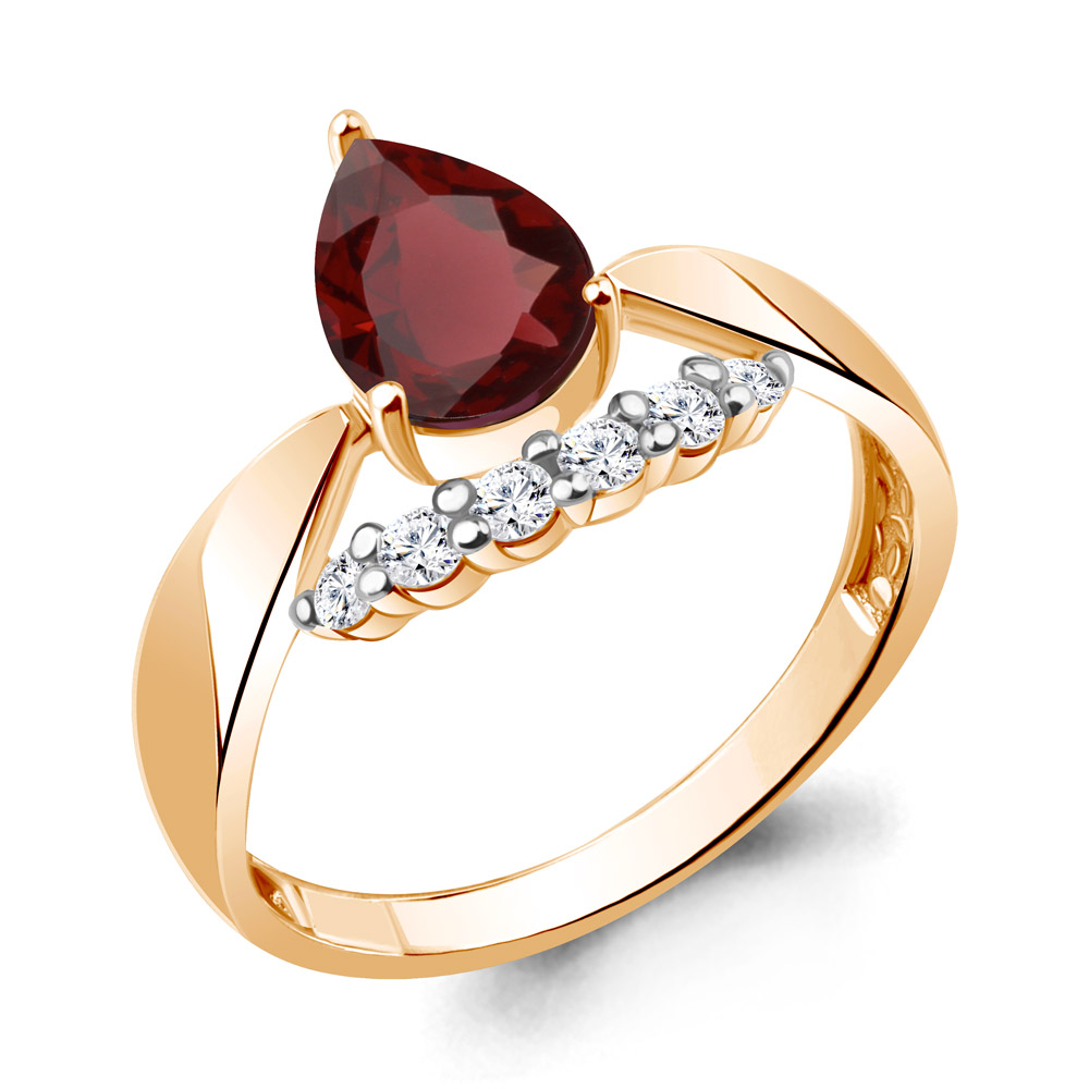 6979503А Кольцо из Серебра с гранатом, фианитами