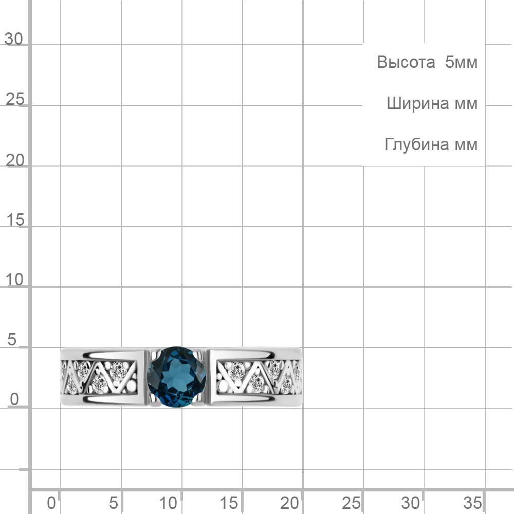 6979908А Кольцо из Серебра с топазом лондон блю, фианитами
