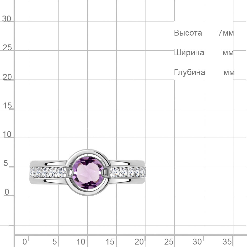 6980004А Кольцо из Серебра с аметистом, фианитами