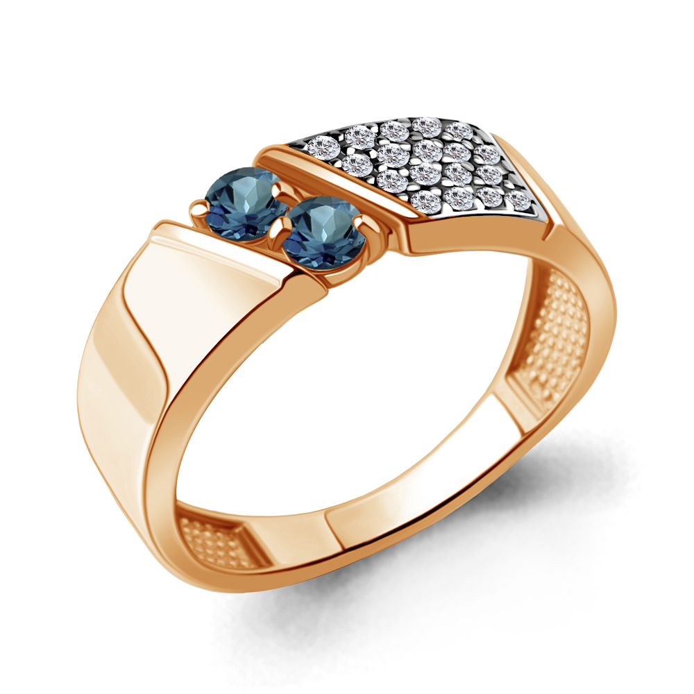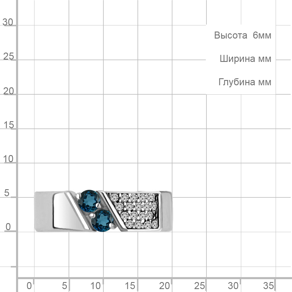 6980408А Кольцо из Серебра с топазами лондон блю, фианитами