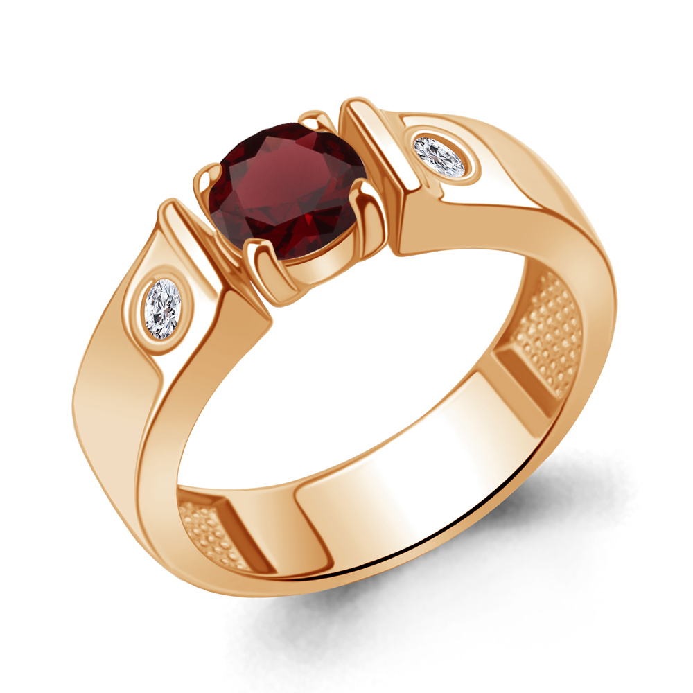 6982103А Кольцо из Серебра с гранатом, фианитами