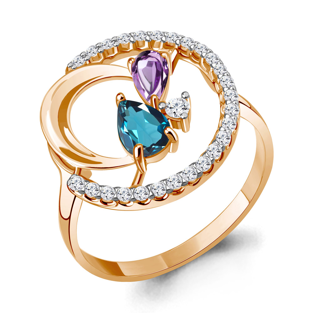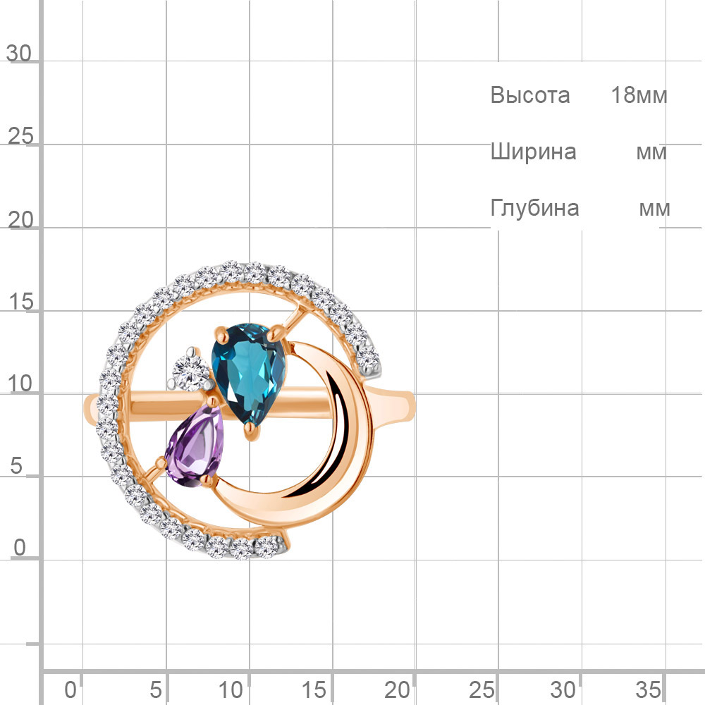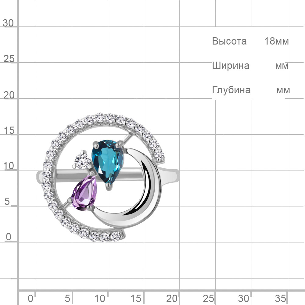 6987132А Кольцо из Серебра с аметистом, топазом лондон блю, фианитами