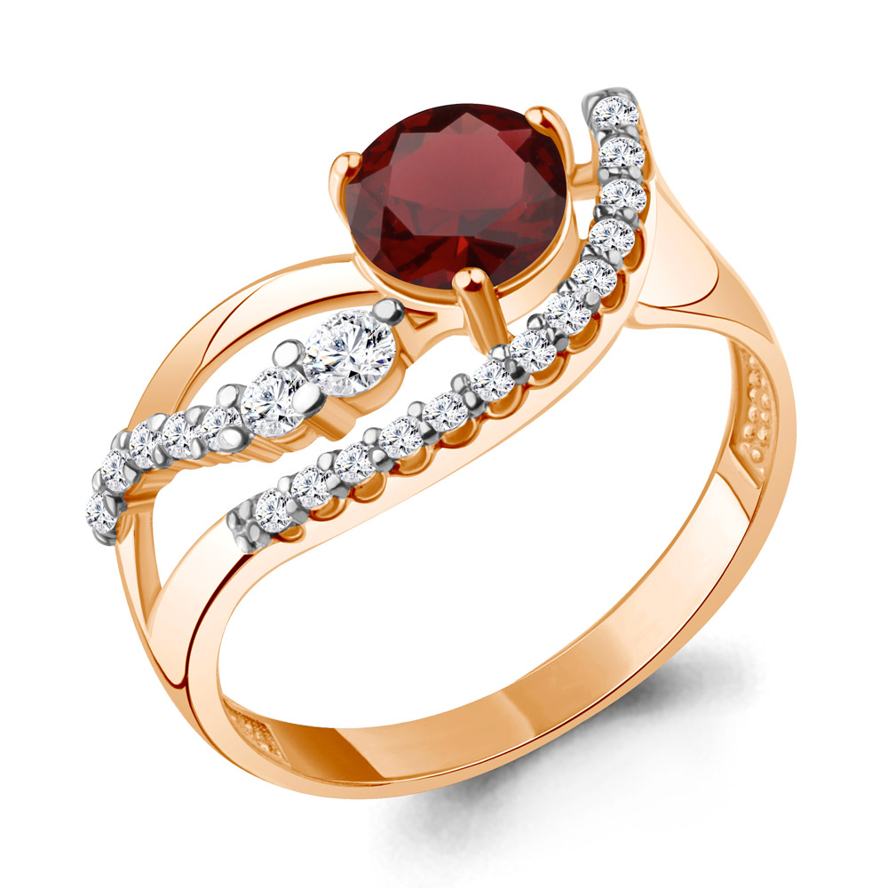 6989903А Кольцо из Серебра с гранатом, фианитами