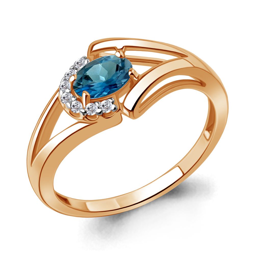 6991608А Кольцо из Серебра с топазом лондон блю, фианитами