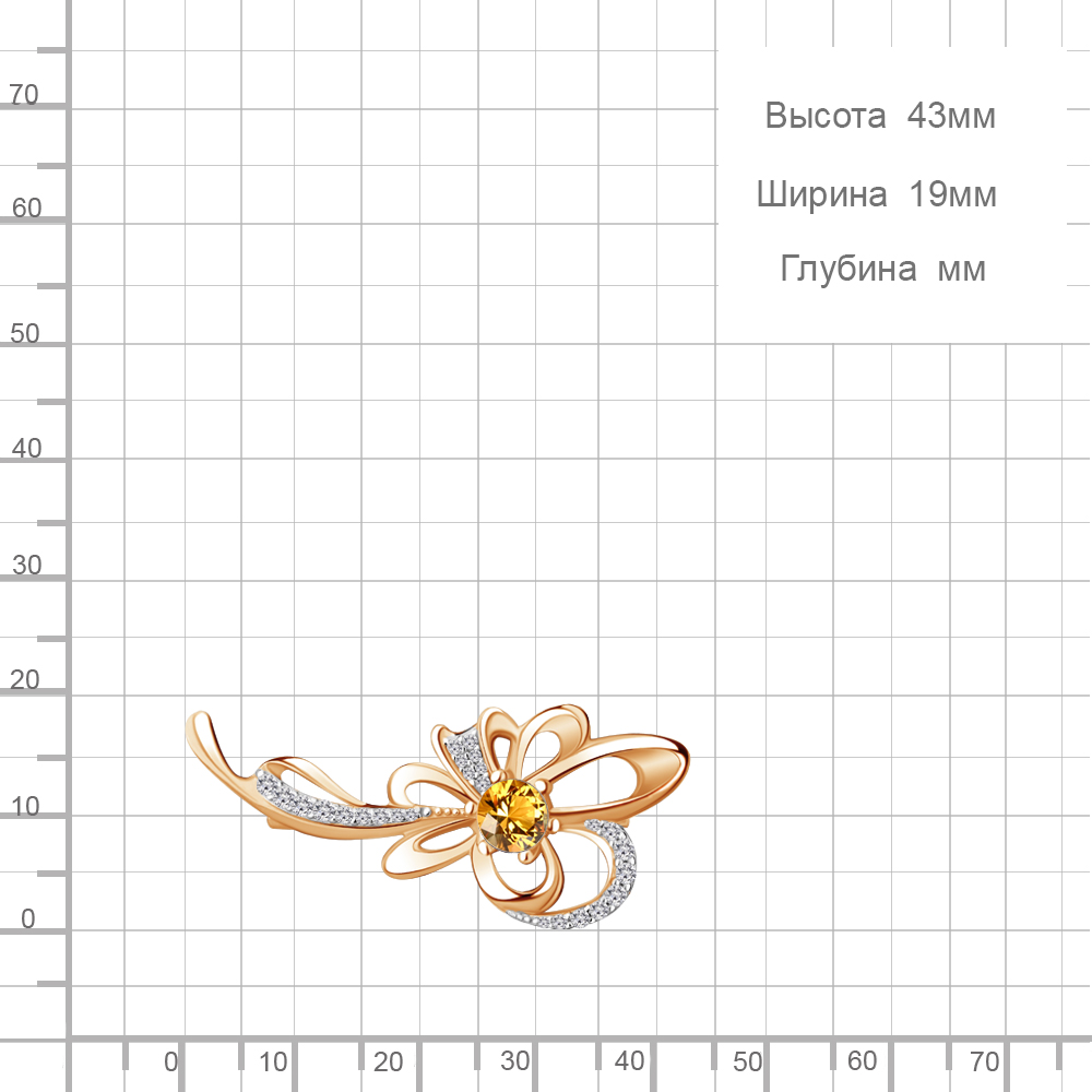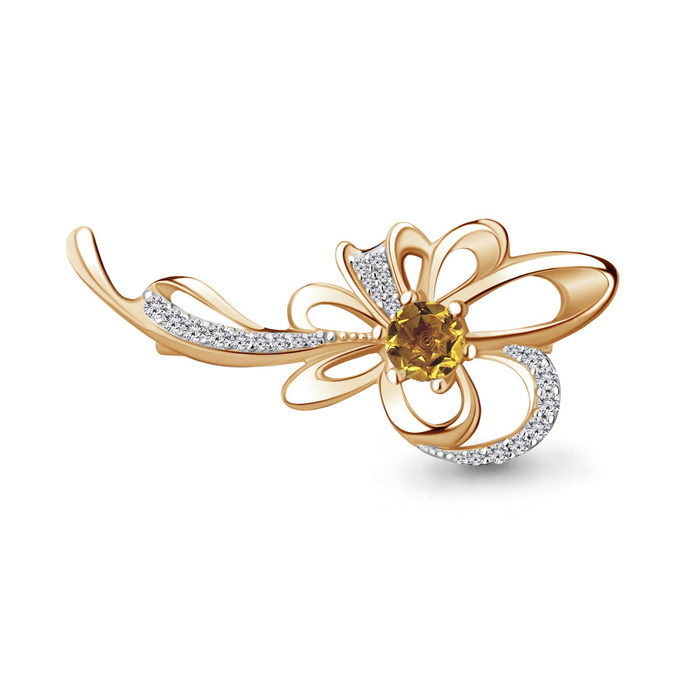 7150906А Брошь из Серебра с фианитами, цитрином