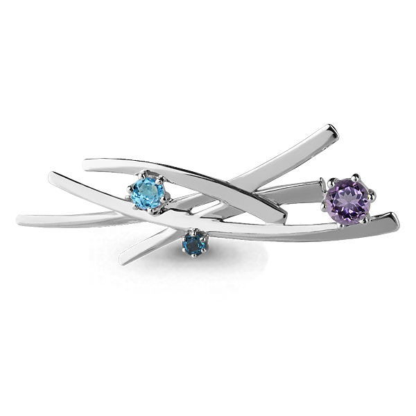 7271842 Брошь из Серебра с аметистом, топазом лондон блю, топазом свисс блю