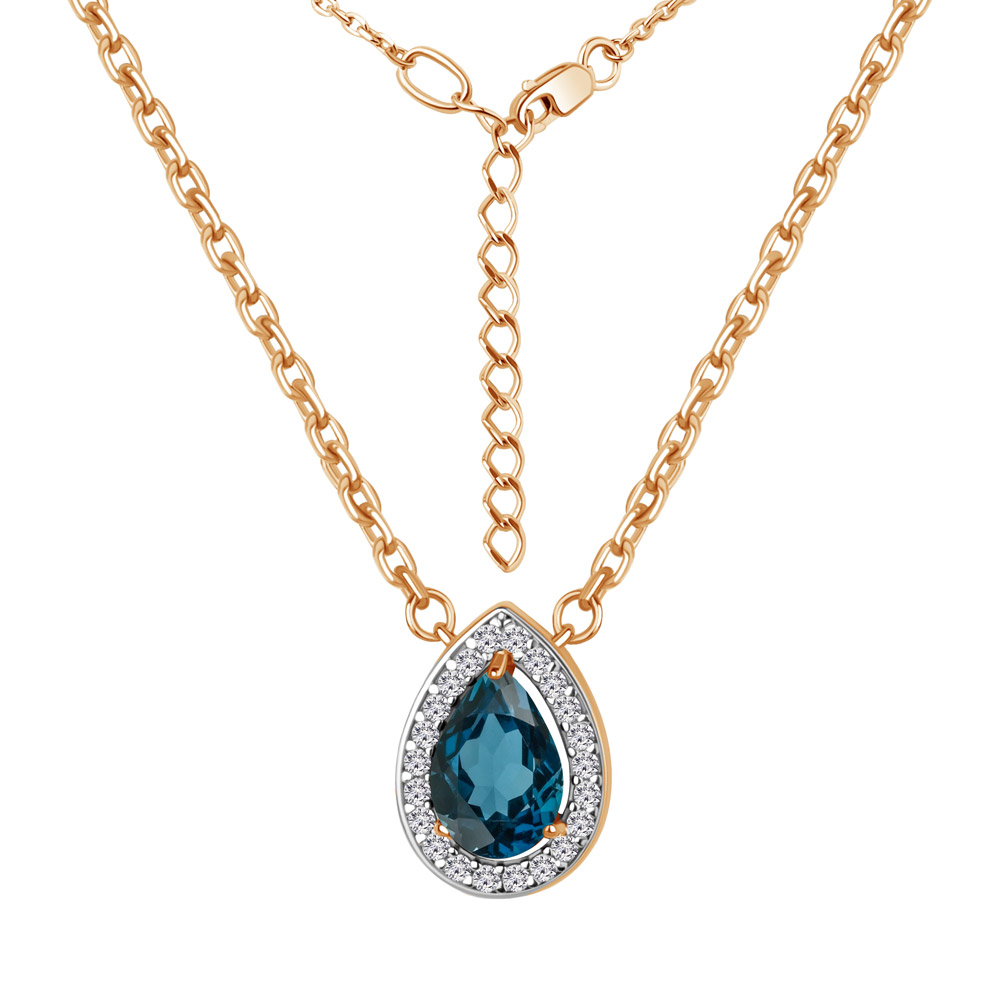7381208А Колье из Серебра с топазом лондон блю, фианитами