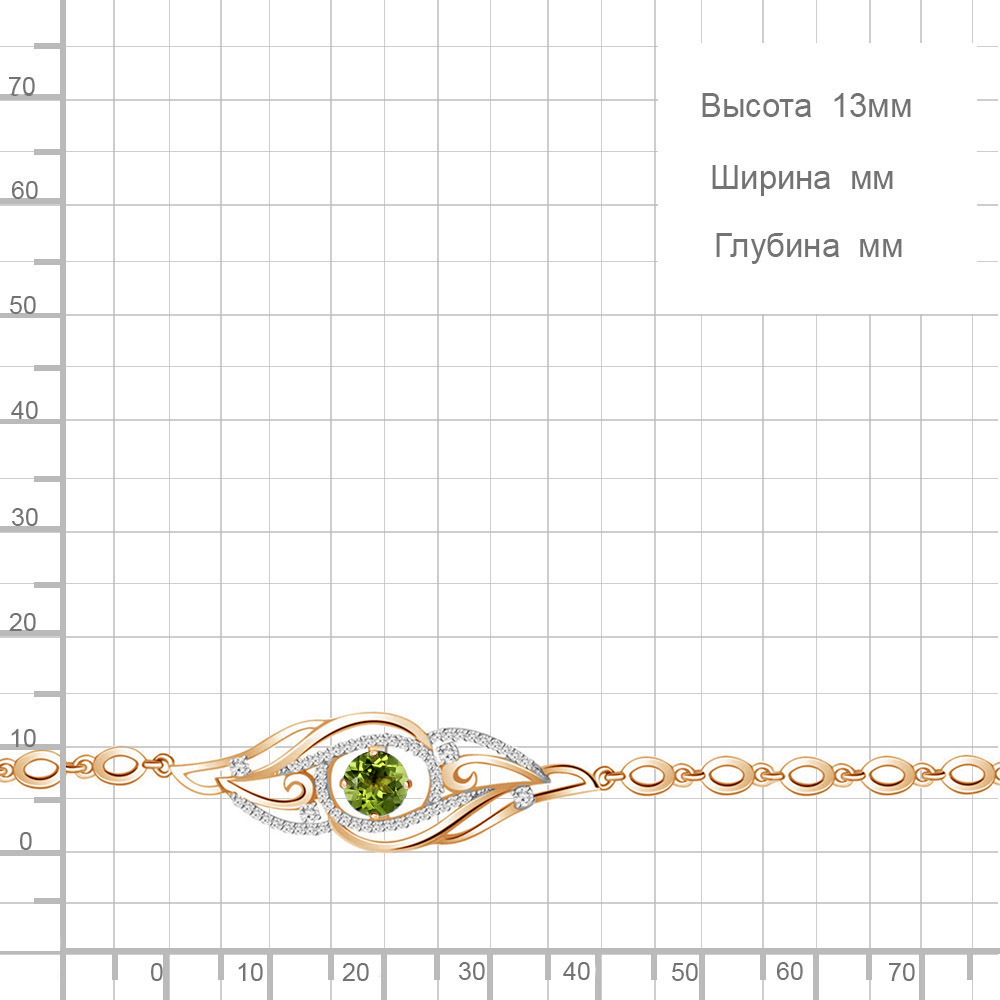 7413707А Браслет из Серебра с фианитами, хризолитом