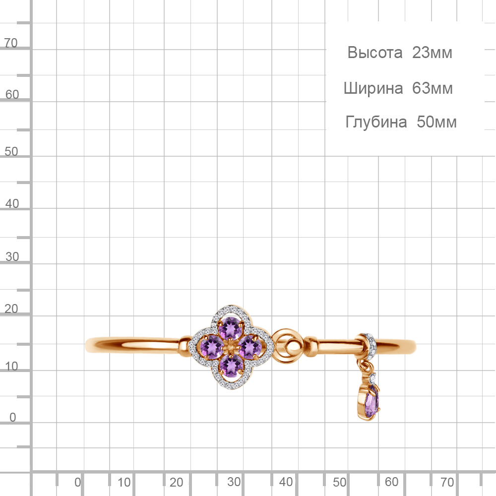 Описание камней 4 Аметист; 1 Аметист; 41 Фианит; 1 Фианит; 5 Фианит