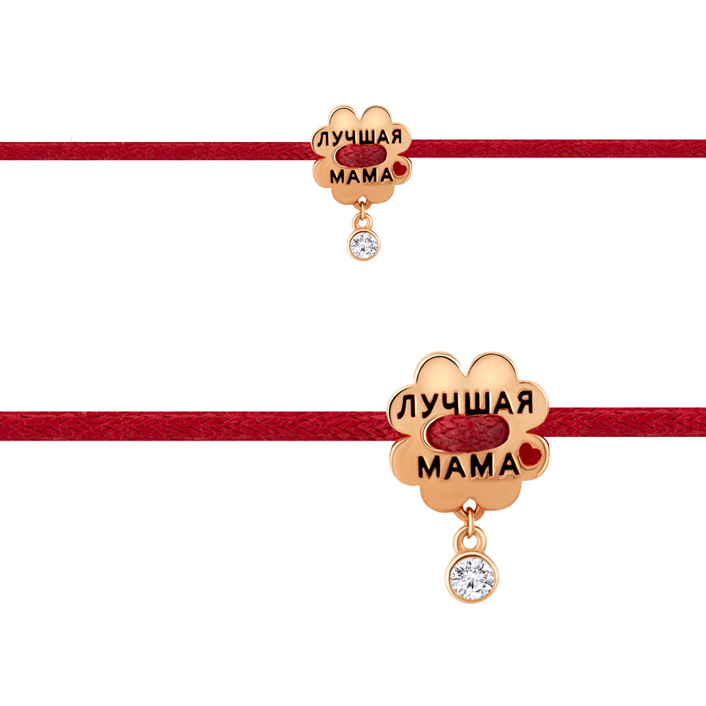 74457А Браслет из серебра с фианитом, шнуром хлопчатобумажным, эмалью