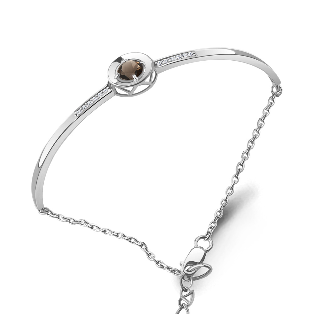 7471001А Браслет из Серебра с кварцем дымчатым, фианитами