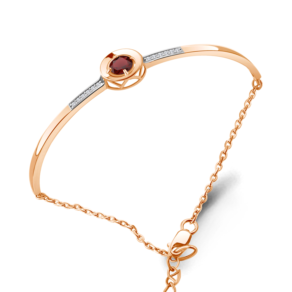7471003А Браслет из Серебра с гранатом, фианитами