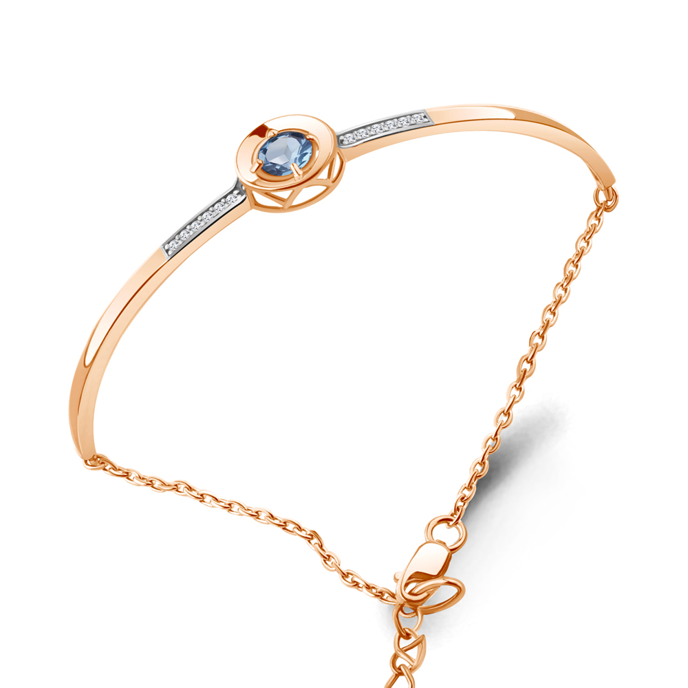 7471005А Браслет из Серебра с топазом свисс блю, фианитами