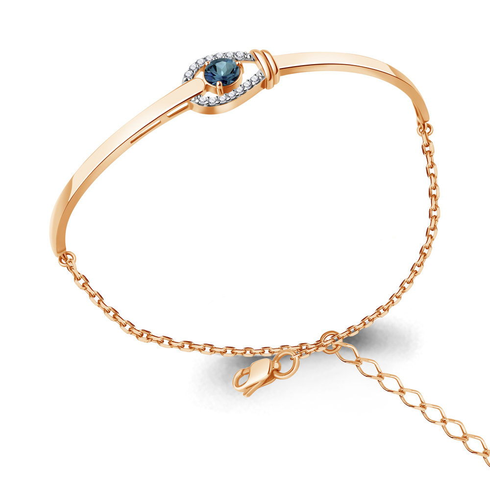 7471208А Браслет из Серебра с топазом лондон блю, фианитами