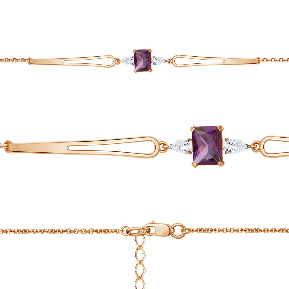 7476884 Браслет из Серебра с наноаметистом иск., фианитами