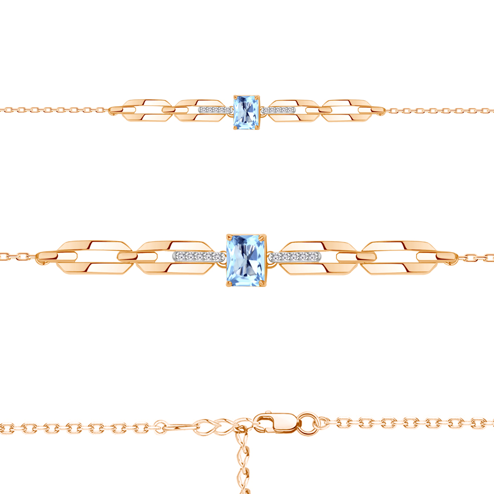 7477202А Браслет из Серебра с топазом скай блю, фианитами